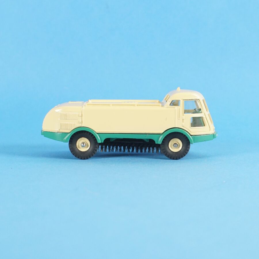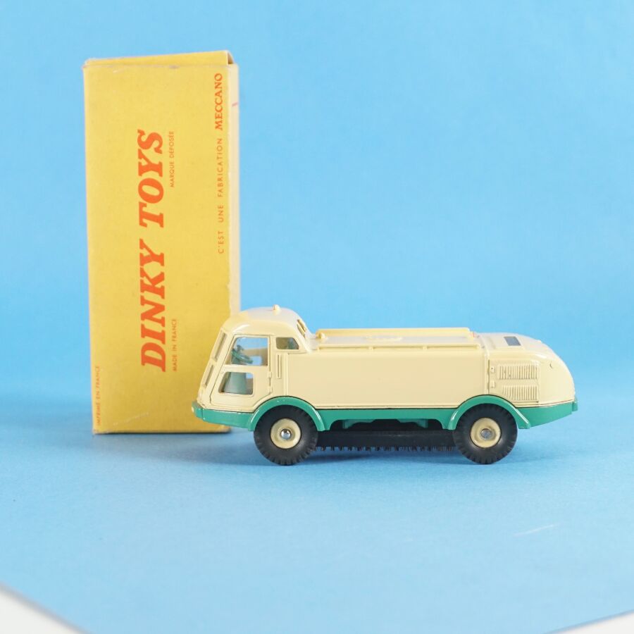 DINKY TOYS : Arroseuse-balayeuse L.M.V, réf. 596, échelle 1/43ème, beige et verte, à cabine vitrée, dans sa boîte d'origine (usures à la boîte, infimes écaillures).