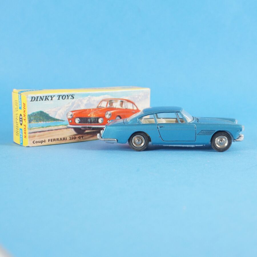 DINKY TOYS : Coupé 2+2 Ferrari 250 GT Pininfarina, réf. 515, échelle 1/43ème, bleue, dans sa boîte d'origine (usures à la boîte, infimes rayures et écaillures).