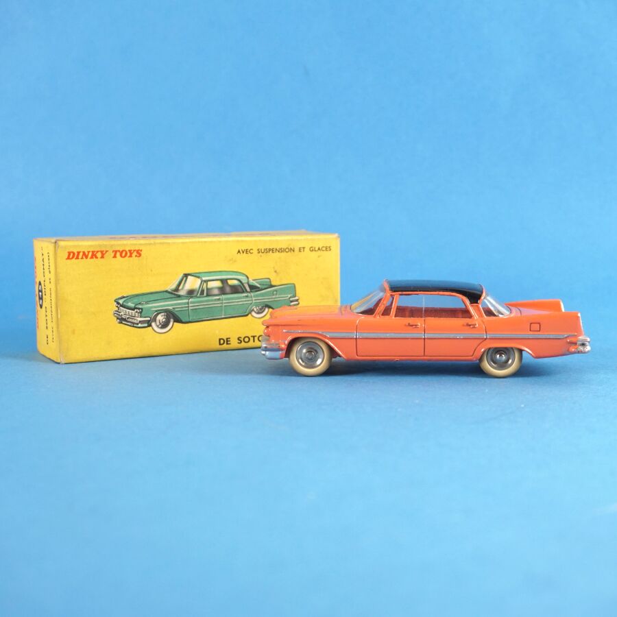 DINKY TOYS : De Soto "Diplomat" réf. 545, échelle 1/43ème, couleur saumon et toit noir, dans sa boîte d'origine (usures à la boîte, infimes rayures et écaillures).