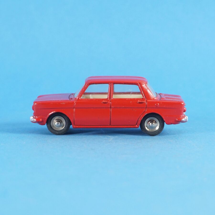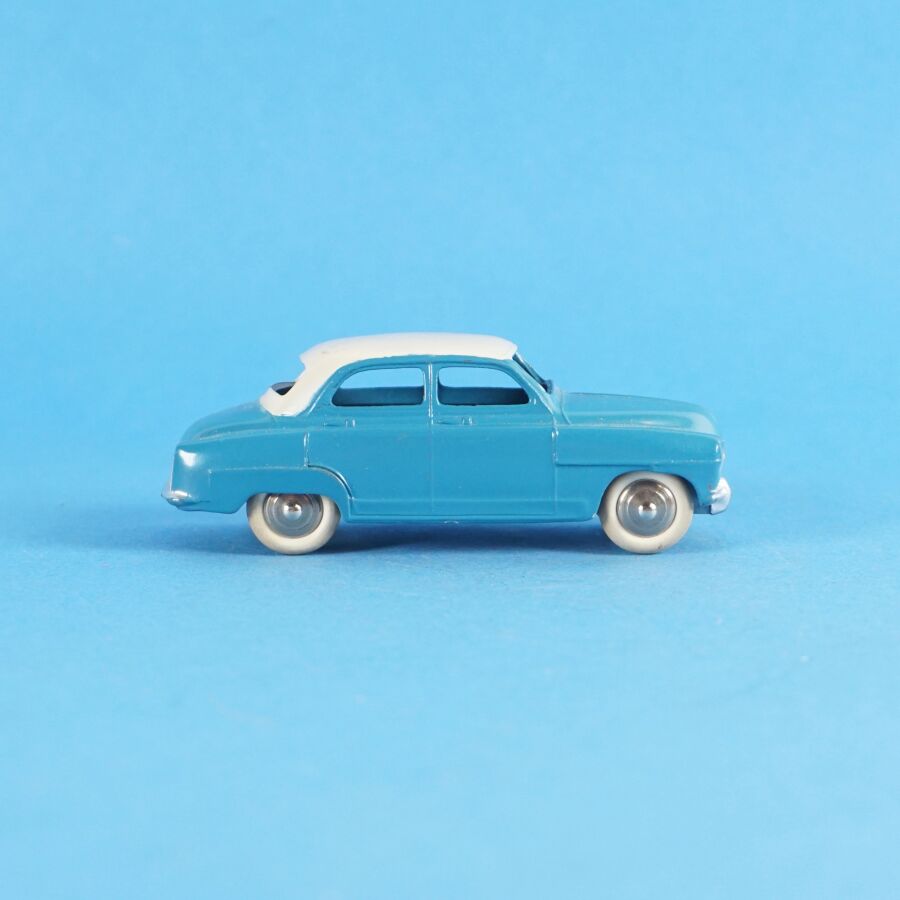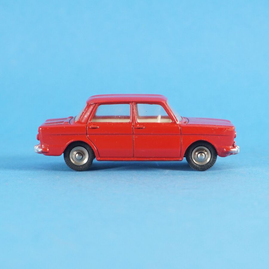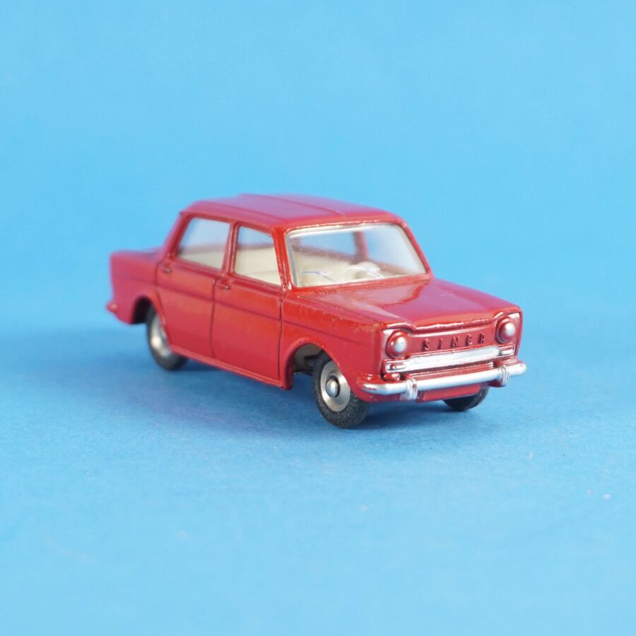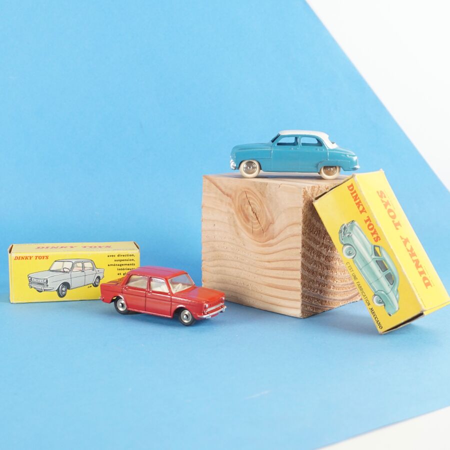DINKY TOYS : Deux véhicules Simca, échelle 1/43ème, comprenant : (1) Simca 1000, réf. 519, rouge, dans sa boîte d'origine (usures à la boîte, infimes écaillures) et (1) Simca 9 "Aronde", réf. 24U, bleu, toit beige, dans sa boîte d'origine (usures à la boîte, infimes écaillures).