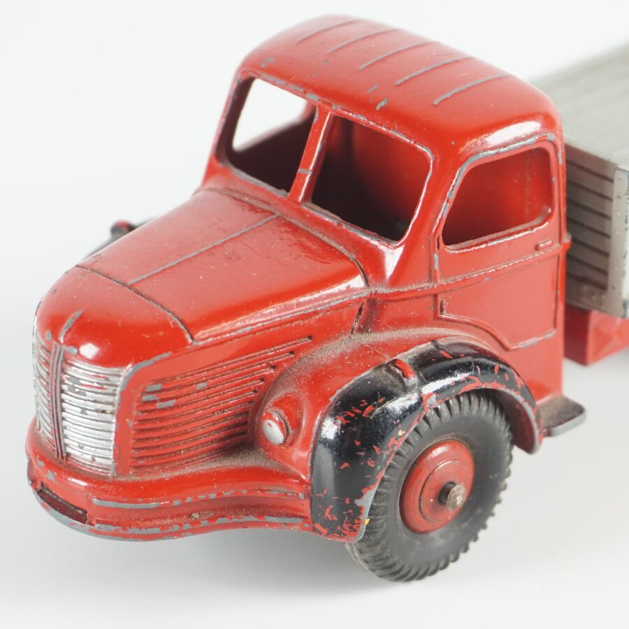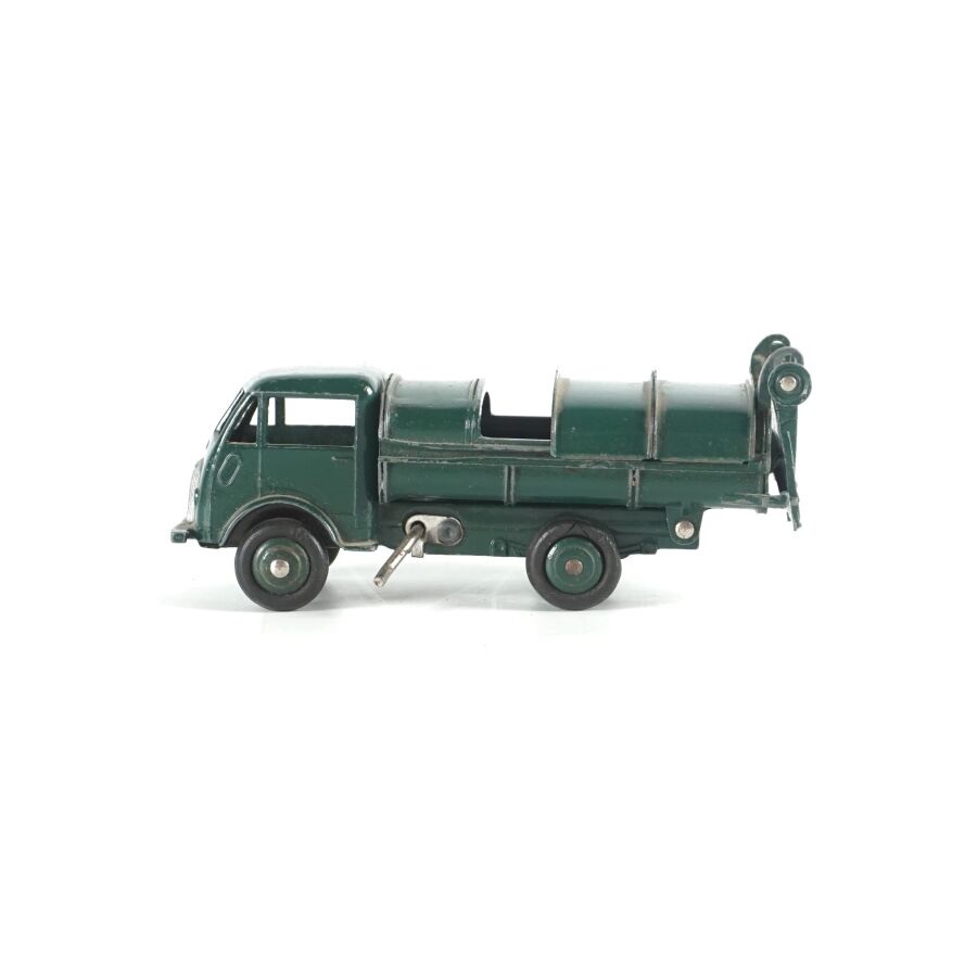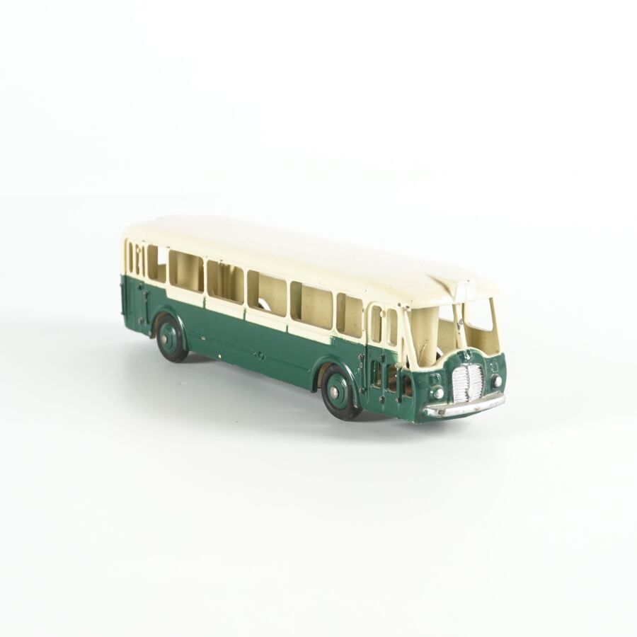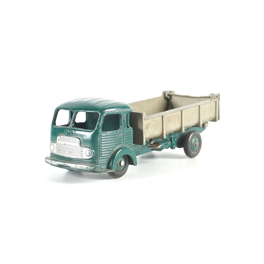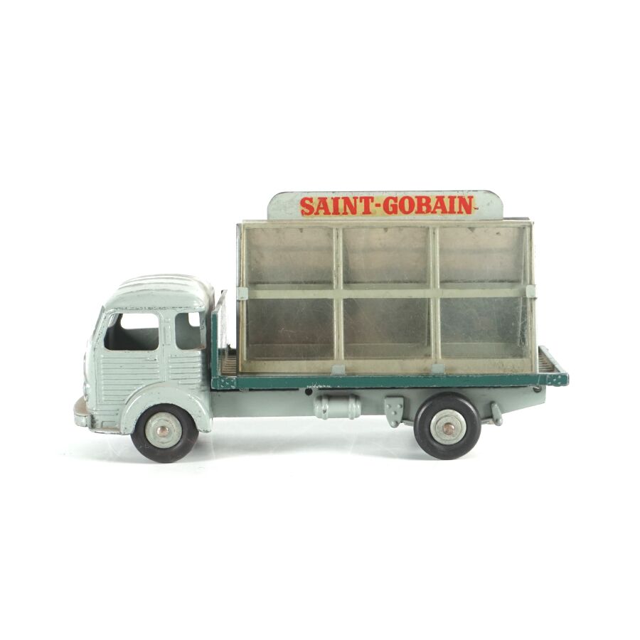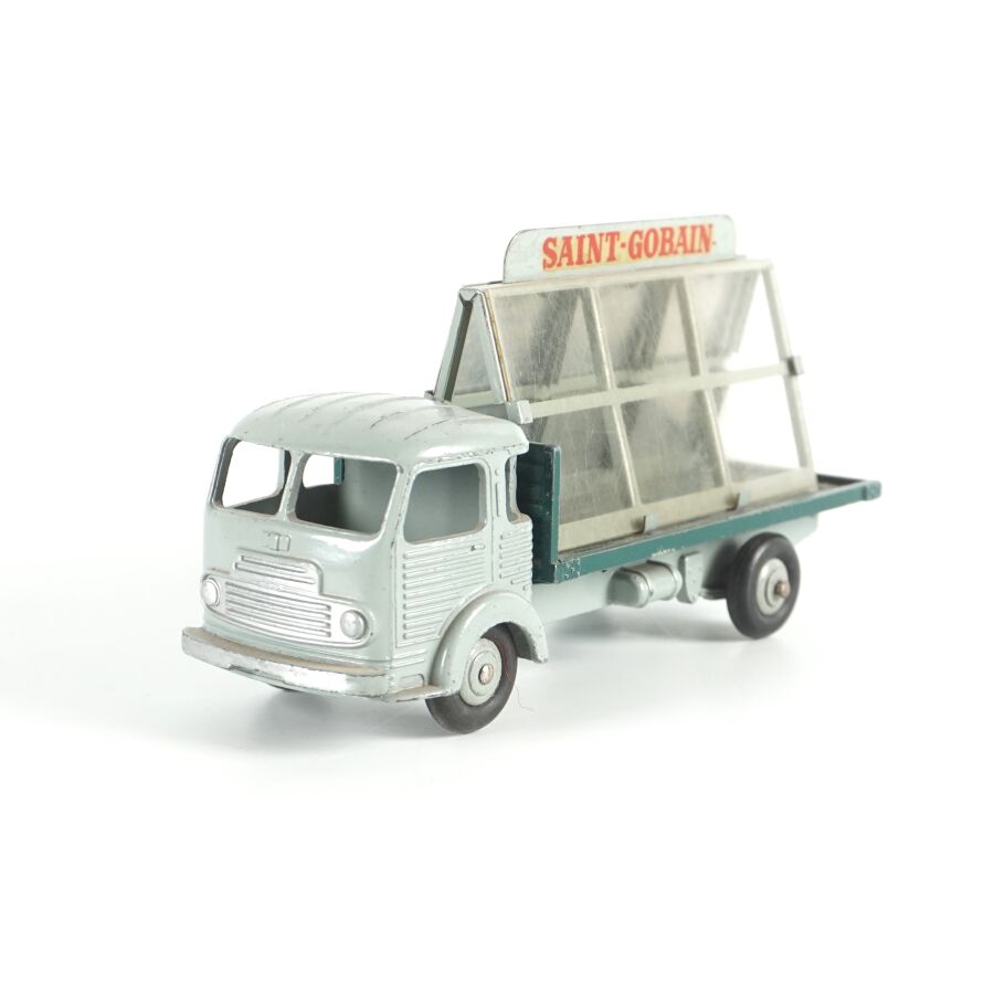 DINKY TOYS : Ensemble de 10 véhicules utilitaires et camions dont (1) Citroën 23, réf. 35A ; (1) Berliet 34 à plateau ; (1) Berliet 34 à benne ; (1) Simca cargo, réf. 33 ; (1) Autobus Chausson, réf. 29F ; (1) Autobus parisien Somua Panhard ; (1) Autocar isobloc ; (1) Simca Cargo réf. 33 avec benne ; (1) Camion benne avec bâche métallique amovible ; (1) Simca cargo réf. 33 avec plateau et accessoires "Saint-Gobain" et (1) Container (état sortie de grenier, sans boîtes, usures, écaillures, manques et accidents).