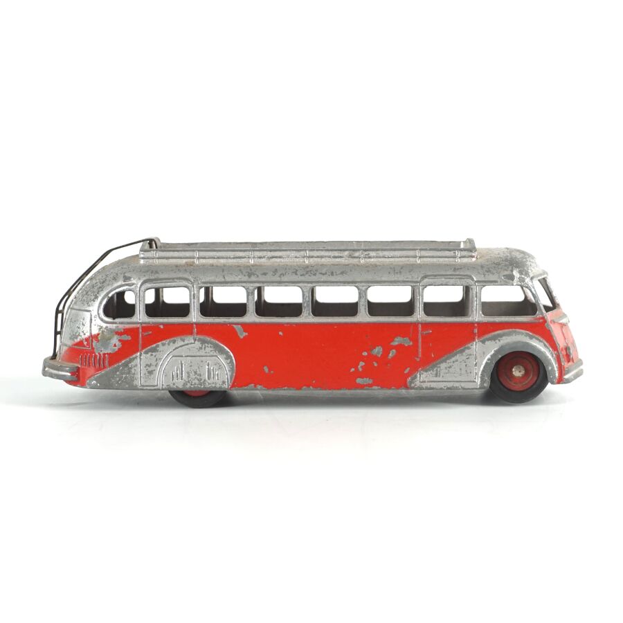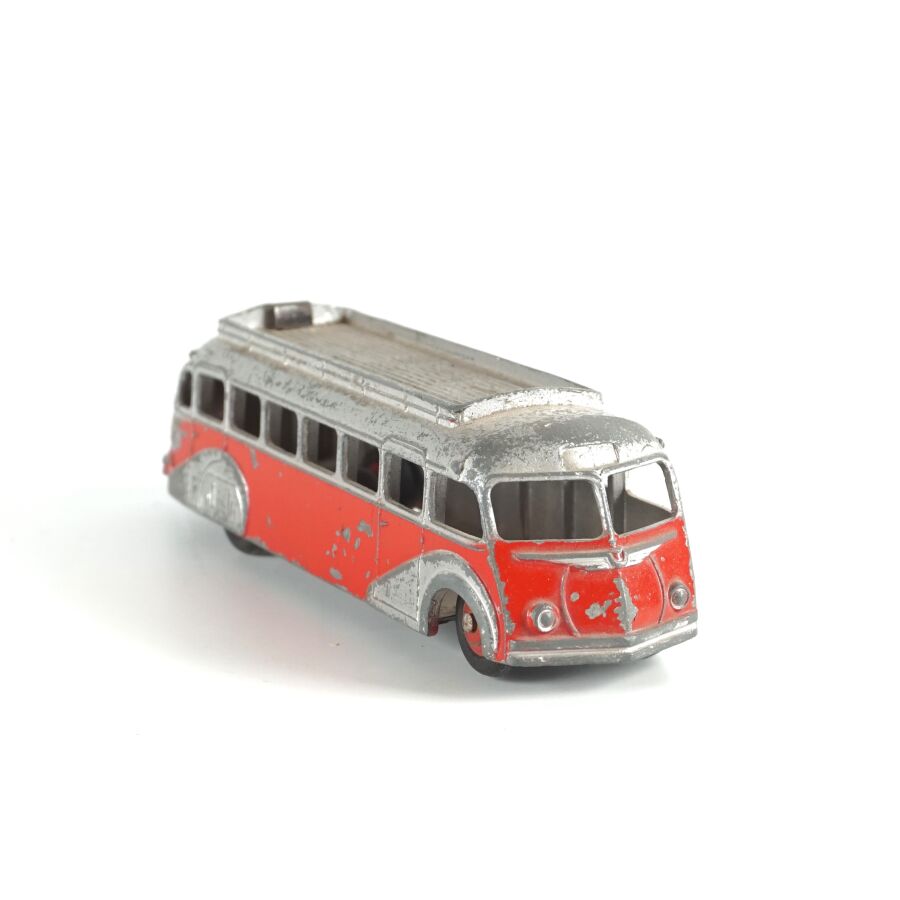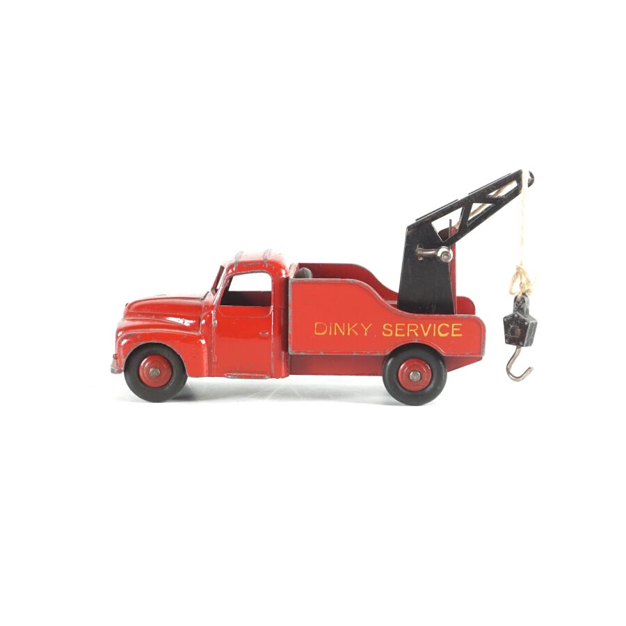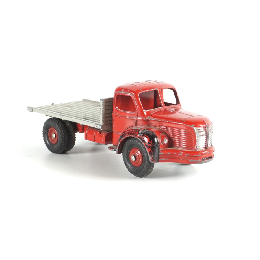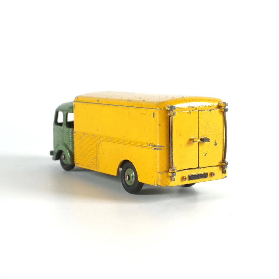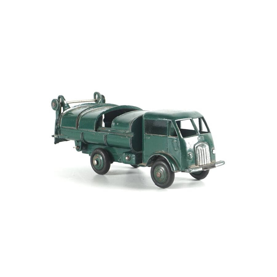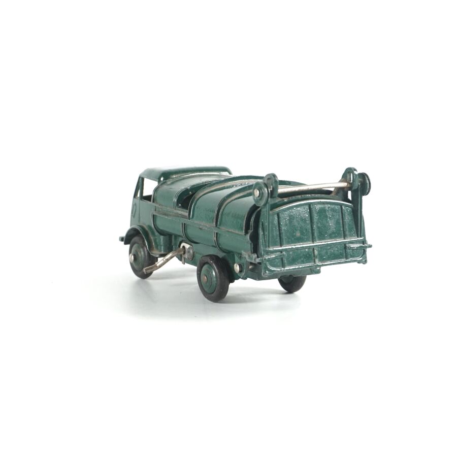 DINKY TOYS : Ensemble de 10 véhicules utilitaires et camions dont (1) Citroën 23, réf. 35A ; (1) Berliet 34 à plateau ; (1) Berliet 34 à benne ; (1) Simca cargo, réf. 33 ; (1) Autobus Chausson, réf. 29F ; (1) Autobus parisien Somua Panhard ; (1) Autocar isobloc ; (1) Simca Cargo réf. 33 avec benne ; (1) Camion benne avec bâche métallique amovible ; (1) Simca cargo réf. 33 avec plateau et accessoires "Saint-Gobain" et (1) Container (état sortie de grenier, sans boîtes, usures, écaillures, manques et accidents).