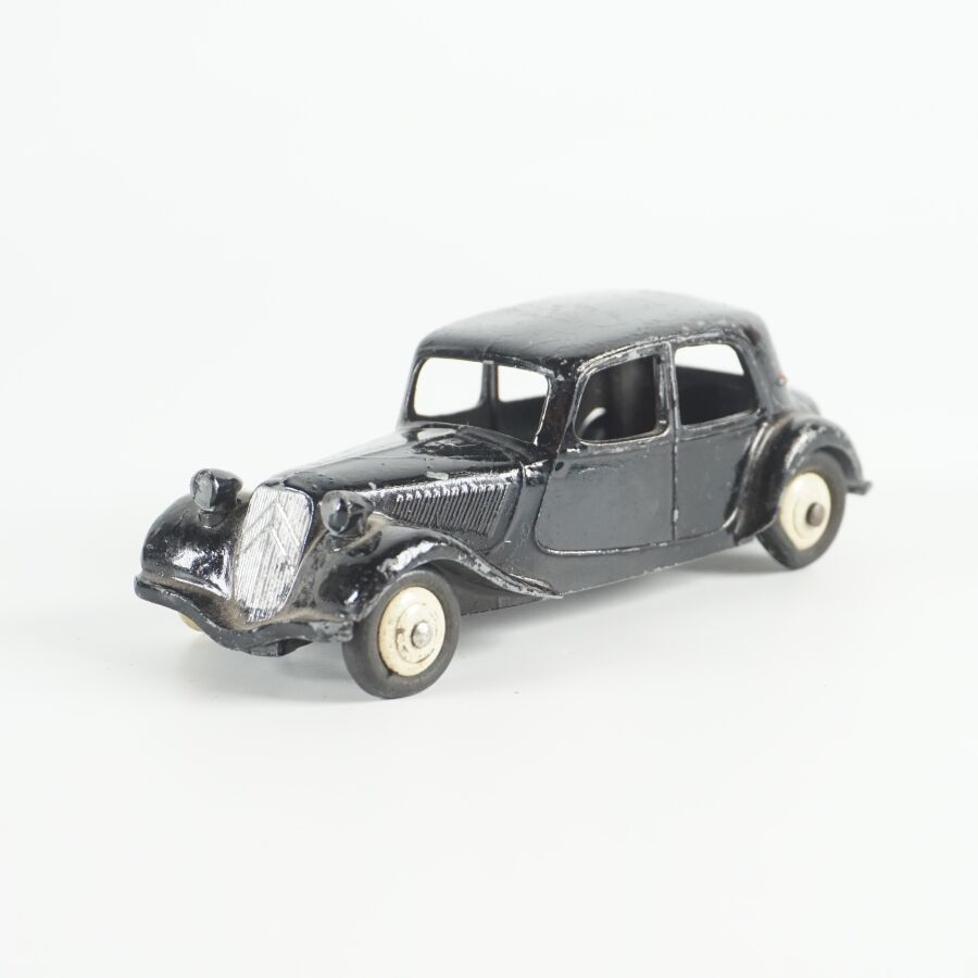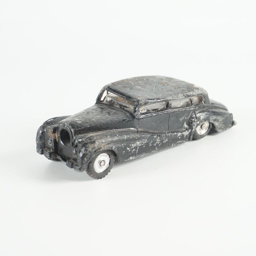 DINKY TOYS : Ensemble de 17 véhicules, échelle 1/43ème, comprenant (1) Citroën 11BL, réf. 24N ; (1) Renault Dauphine, réf. 24E ; (2) Ford vedette, réf. 24X (dont une taxi) ; (2) Buick Roadmaster, réf. 24 V ; (1) Citroën 1200 k, réf. 25C ; (2) Peugeot D.3.A, réf. 25B ; (1) Peugeot 203 ; (1) Studebaker commander, réf. 24Y ; (1) Simca Versailles, réf. 24Z ; (1) Simca 9 aronde, réf. 24U ; (1) Rolls-Royce Silver wraith, réf. 51 (accidentée) ; (1) Simca 8 sport ; (1) Tabot lago, réf. 23H et (1) Ferrari, réf. 23J (sans boîte, en état sortie de grenier, accidents, écaillures et importantes rayures).
