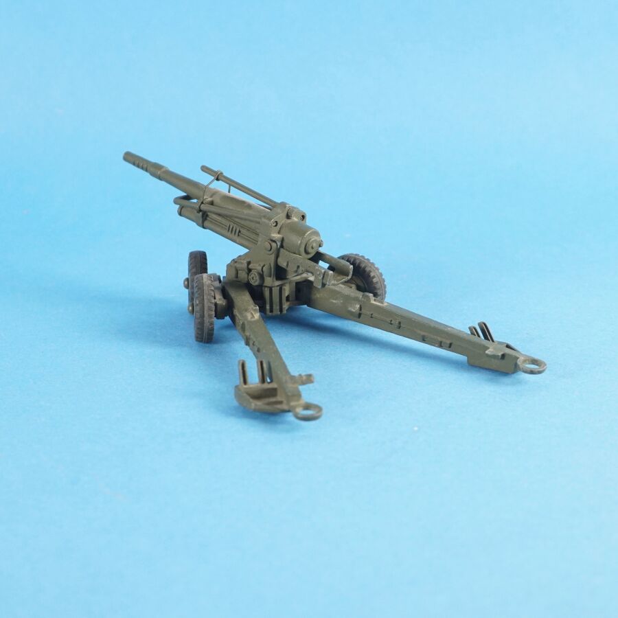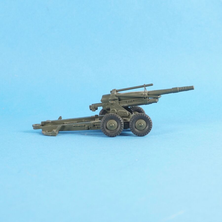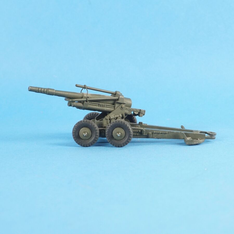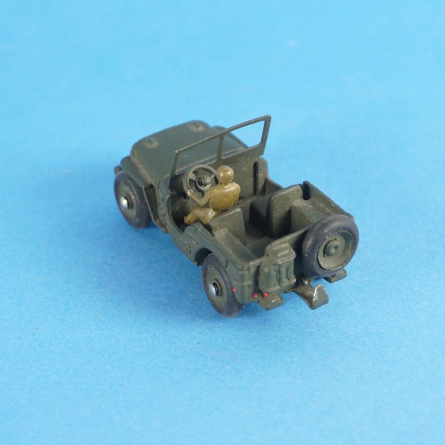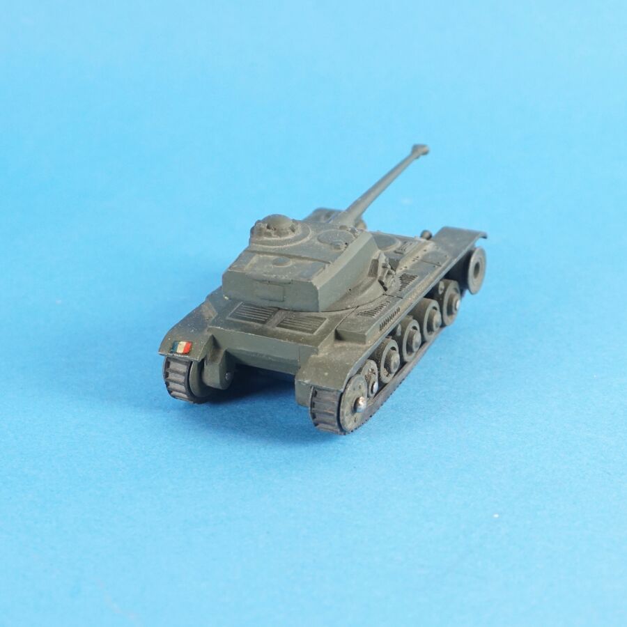 DINKY TOYS : Ensemble de 4 véhicules/engins militaires, échelle 1/43ème, comprenant : (1) Char A.M.X 13 tonnes, réf. 80C, dans sa boîte d'origine (usures à la boîte, quelques traces) ; (1) Engin Blindé de Reconnaissance Panhard, réf. 815 80A, dans sa boîte d'origine (usures à la boîte, quelques traces) ; (1) Obusier de 155 A.B.S, réf. 80E, dans sa boîte d'origine (usures à la boîte, quelques traces) et (1) Jeep Hotchkiss-Willys, réf. 816, avec conducteur, dans sa boîte d'origine (usures à la boîte, quelques traces).