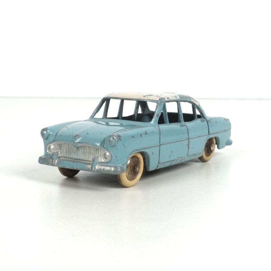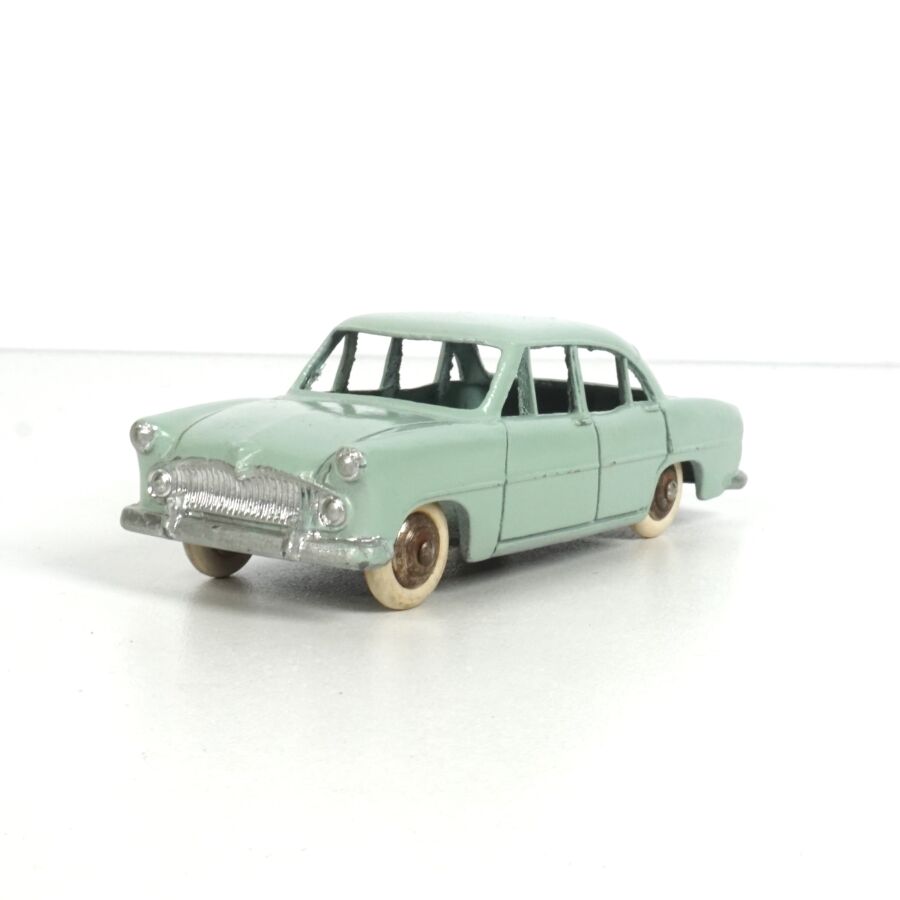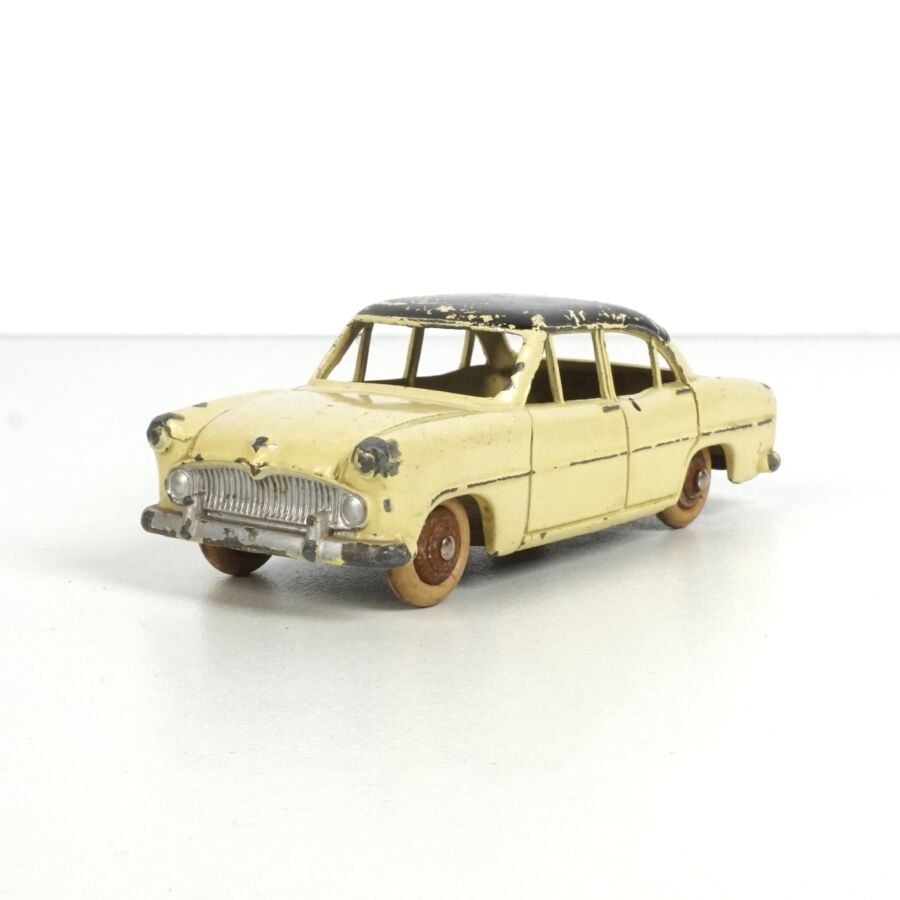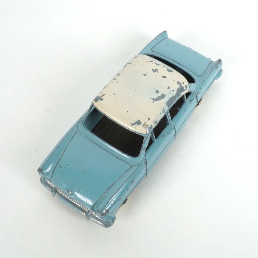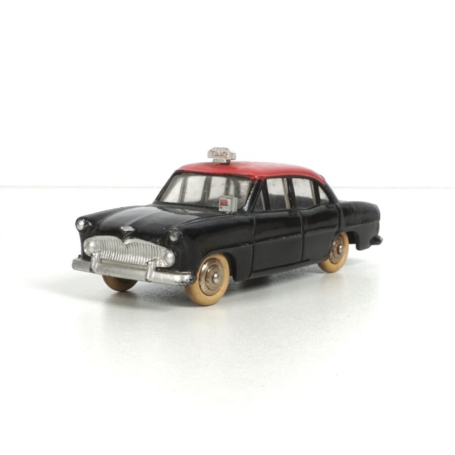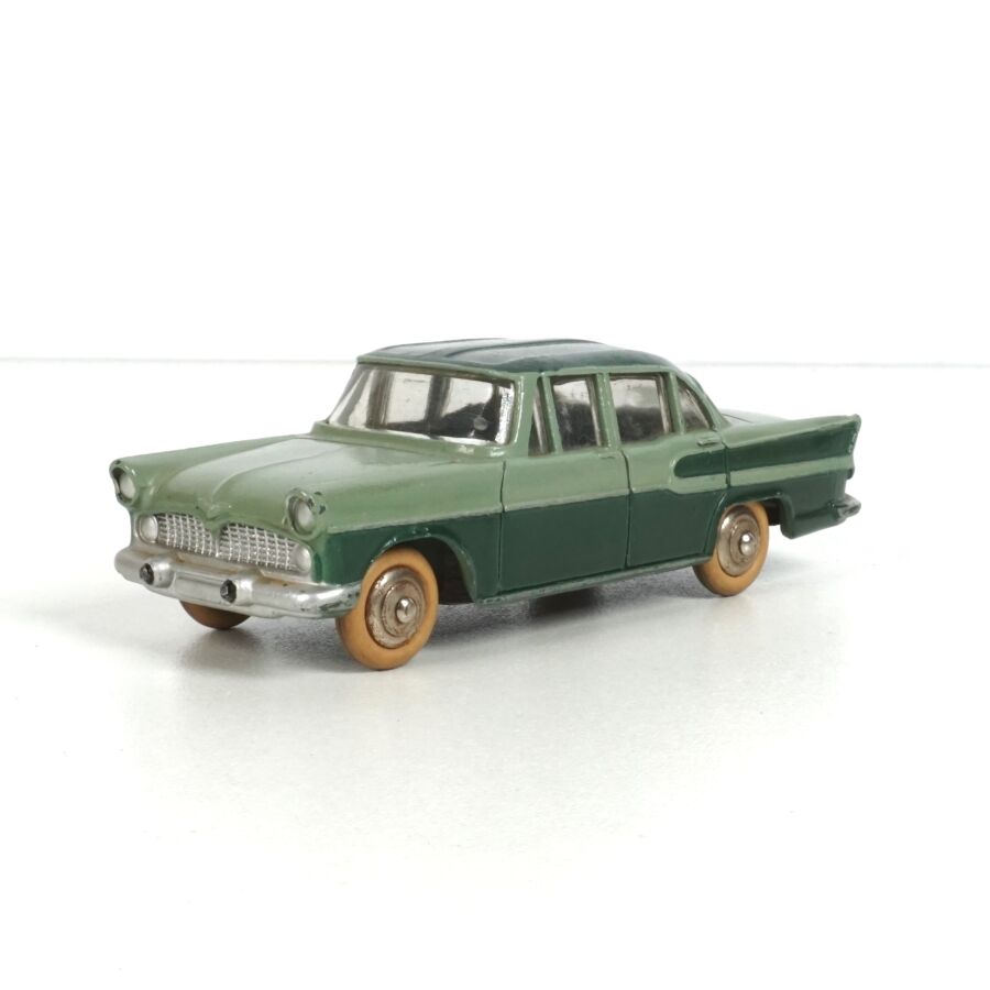DINKY TOYS : Ensemble de 5 véhicules, échelle 1/43ème, comprenant (1) Simca Chambord, réf. 24K, verte deux tons, avec glaces ; (1) Simca Versailles, réf. 24Z, bleue toit blanc ; (1) Simca Versailles, réf. 24Z, jaune toit noir ; (1) Simca Versailles, verte et (1) Taxi Simca Ariane, réf. 24ZT, noire toit rouge, avec glaces (écaillures, usures).