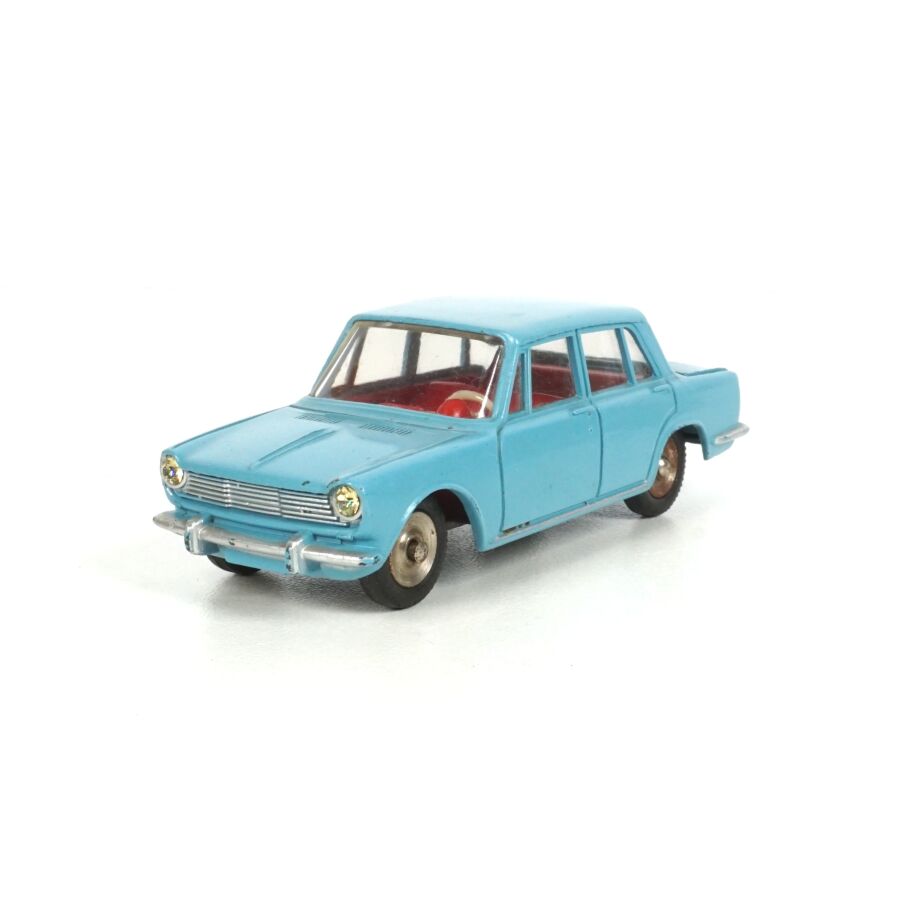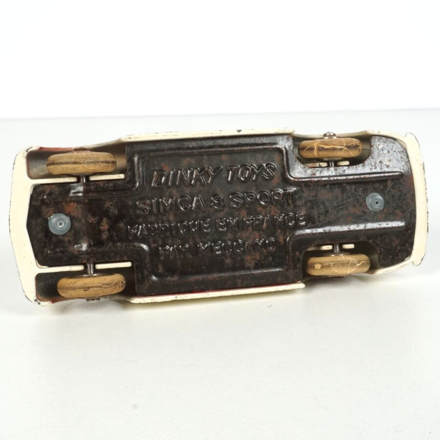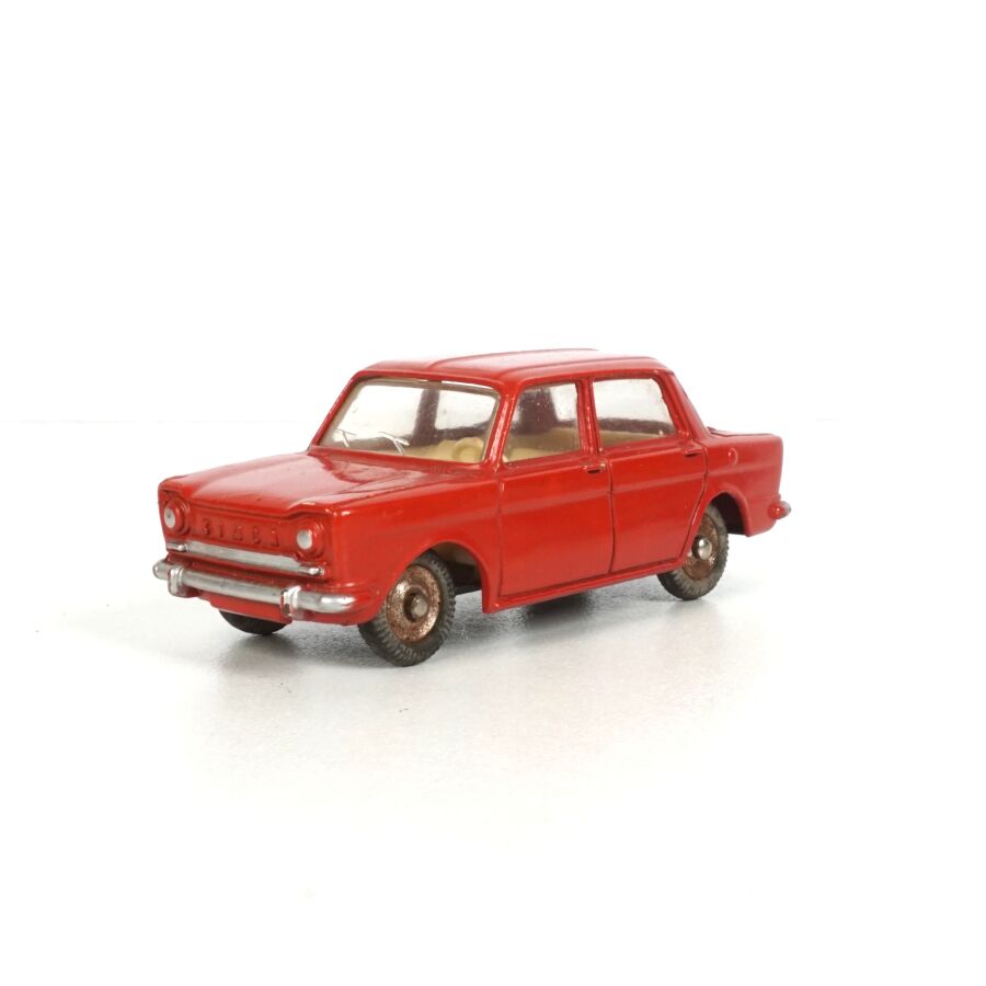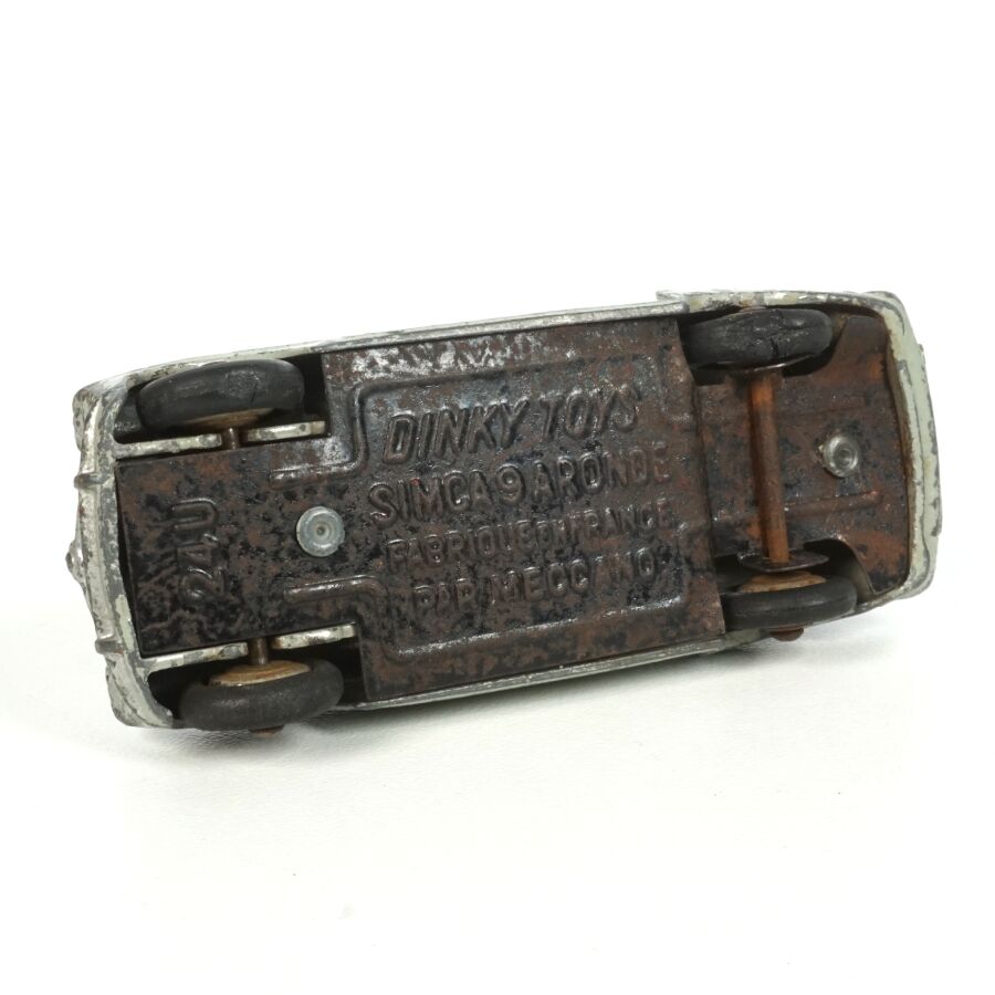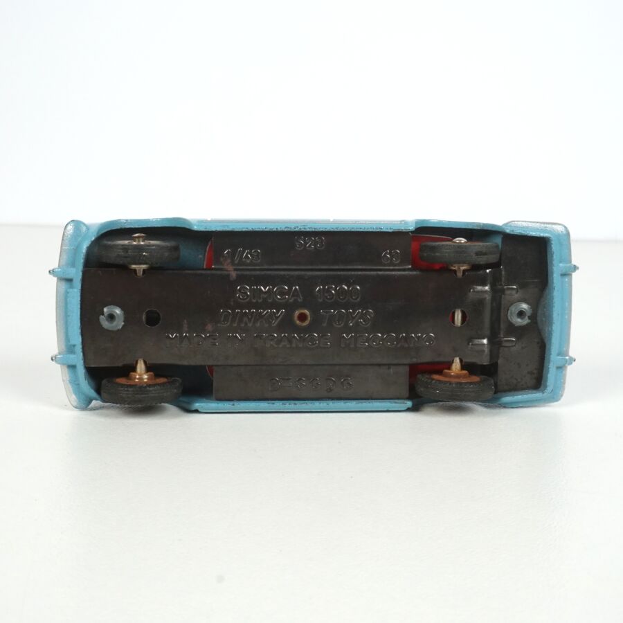 DINKY TOYS : Ensemble de 7 véhicules, échelle 1/43ème, comprenant (1) Taxi Simca 9 Aronde, réf. 24U, rouge toit bleu ; (1) Simca 1100, réf. 1407, grise, avec glaces, coffre et capot ouvrant ; (1) Simca 8 Sport, beige ; (1) Simca 1500, réf. 523, bleue, avec glaces ; (1) Simca 1000, réf. 519, rouge, avec glaces ; (1) Simca 9 Aronde, réf. 24U, grise et (1) Simca-Aronde, réf. 544, grise toit bleu/gris, avec glaces (quelques usures et écaillures, la Simca 9 Aronde grise en l'état).