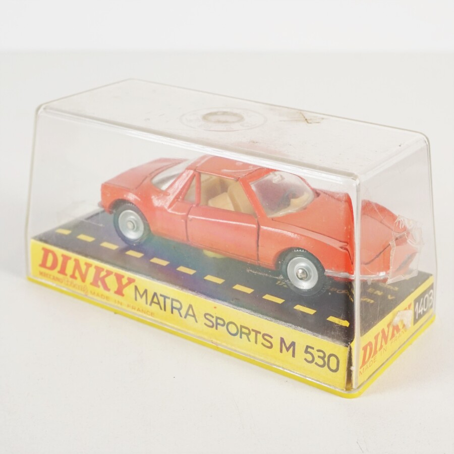 DINKY TOYS : Ensemble de 9 véhicules miniatures, échelle 1/43e comprenant 1 Frazer nash ; 2 Renault dauphine, réf. 24 E ; 1 Triumph ; 2 Fiat 1800, réf. 548 ; 1 Volkswagen, sans boîtes (en l'état) et 1 Matra Sports M 530, dans sa boîte d'origine.