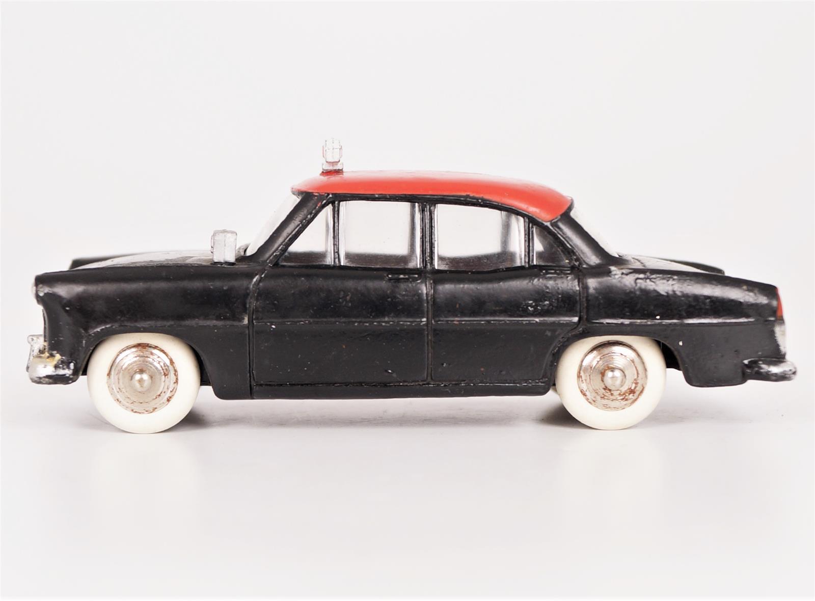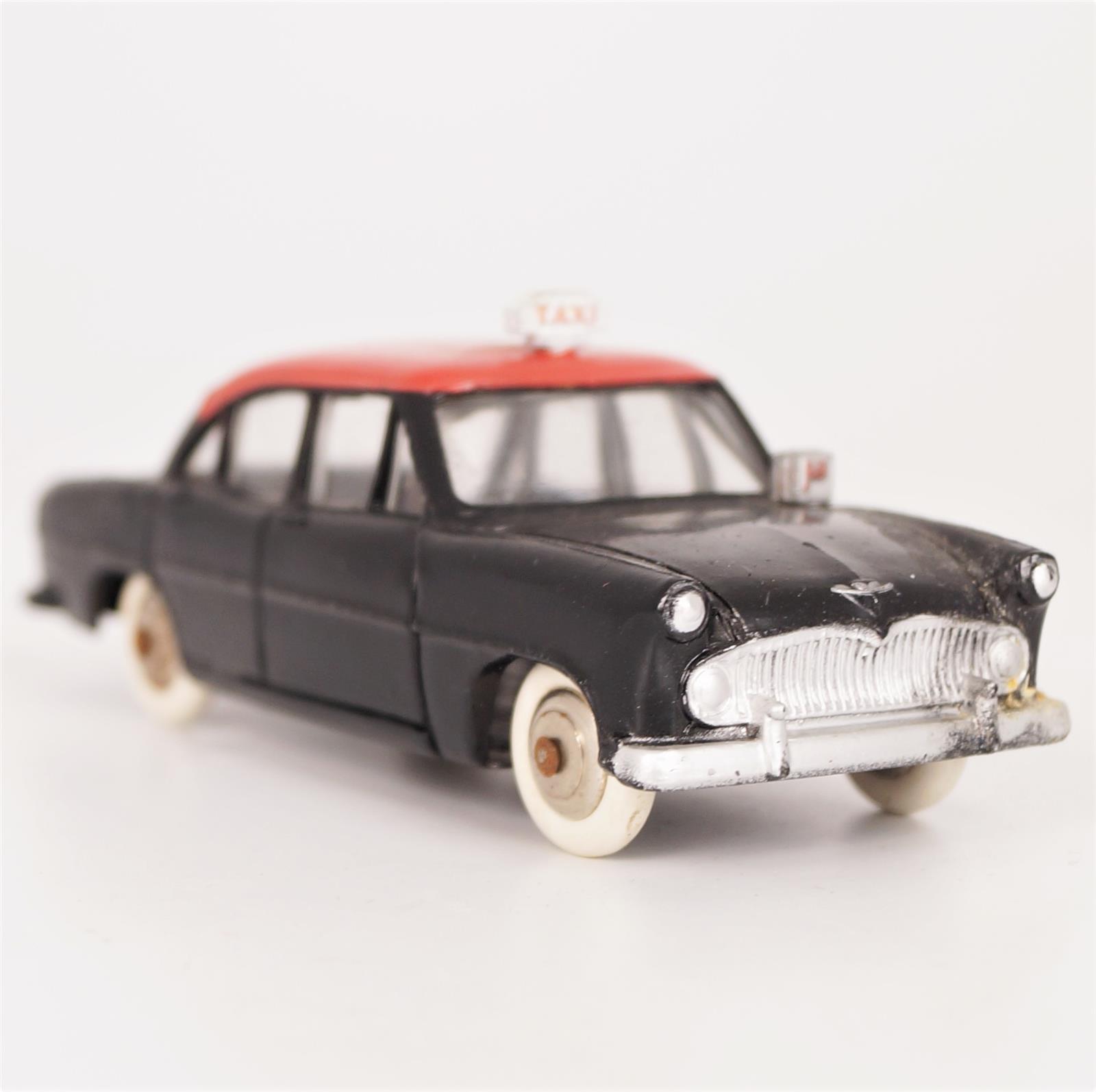 DINKY TOYS France : Taxi Ariane Simca, réf 542 24 Z, avec glaces, couleur noir et toit rouge, dans sa boîte d'origine, L. 10.8 cm (traces, notamment sur le capot et sur le phare avant gauche, infimes usures à la boîte).