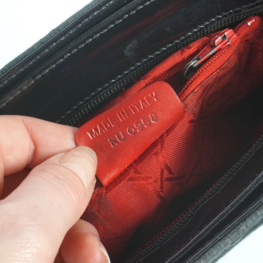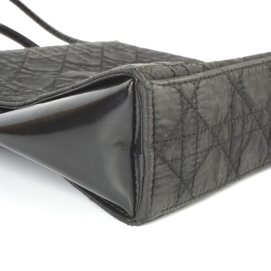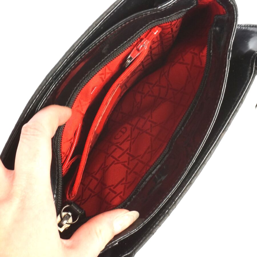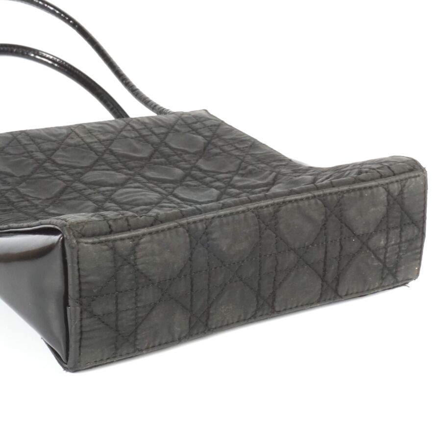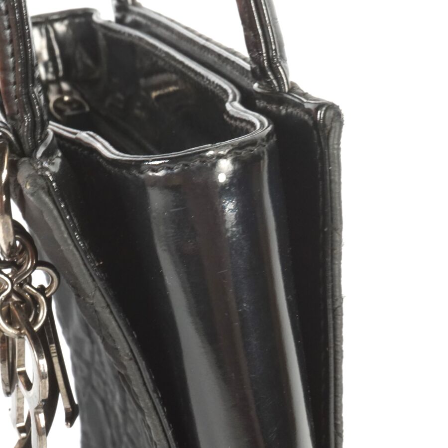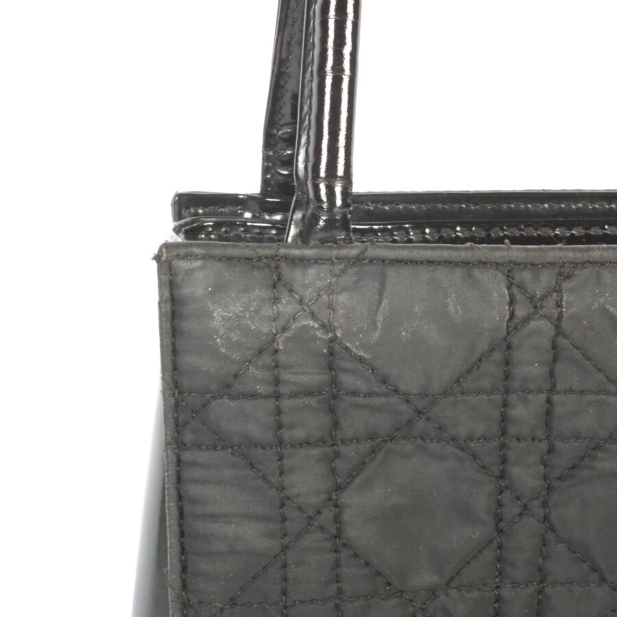 DIOR : Sac à main modèle "Lady Dior" en nylon matelassé et et cuir lisse de couleur noir, deux anses pour un porté main, fermeture principale zippée, intérieur rouge logoté "CD", pochette intérieure zippée avec plaque en cuir rouge logotée et numérotée, avec sa bijouterie "DIOR" en métal argenté, H. Hors anses : 22 cm. H. Avec anses : 39 cm. L. 21.5 cm. Larg. 7.5 cm (usures notamment aux coins inférieurs, traces).