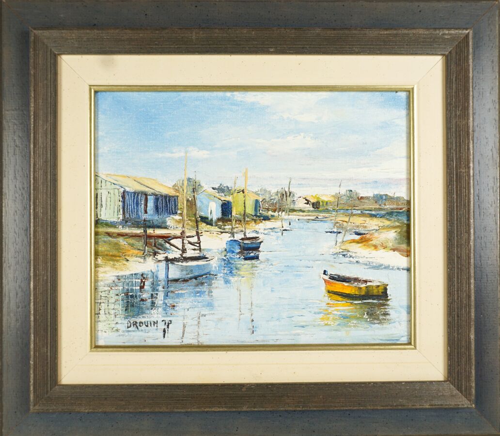 DROUIN (XXe), "Marais breton du côté de Bouin", huile sur toile signée en bas à gauche, 22 x 27 cm.
