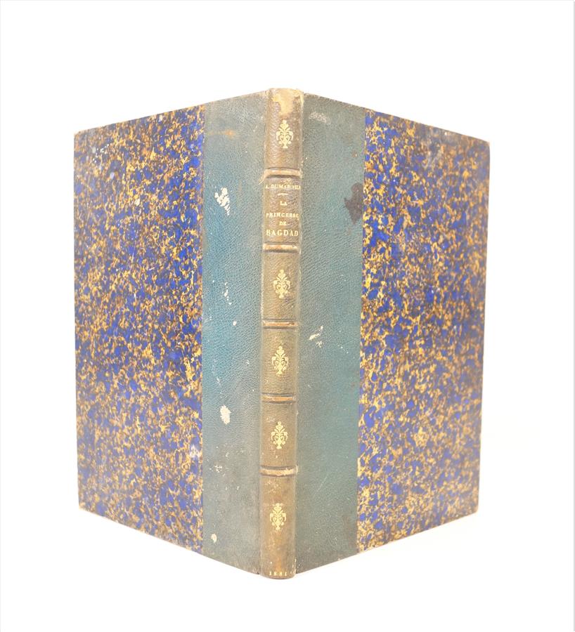 DUMAS (Alexandre, fils) - La princesse de Bagdad. Pièce en trois actes - Paris ; Calmann-Lévy, 1881 - 1 volume In-8° - Quelques rousseurs éparses - Reliure de l'époque demi-chagrin vert bouteille (de petites épidermures) - Dos à nerfs orné, titré et daté or (passé uniformément et frotté) - Tête dorée - Exemplaire en 1ère édition, enrichi d'1 envoi autographe signé de l'auteur à la 2nde garde blanche.