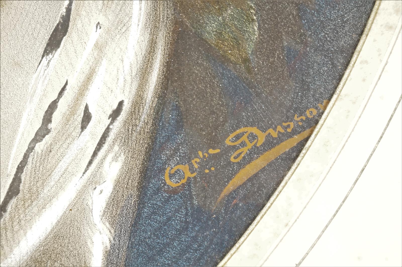 DUSSON (XIXe), "Jeune femme au foulard de tulle", estampe signée en bas à droite, 63 x 51 cm.