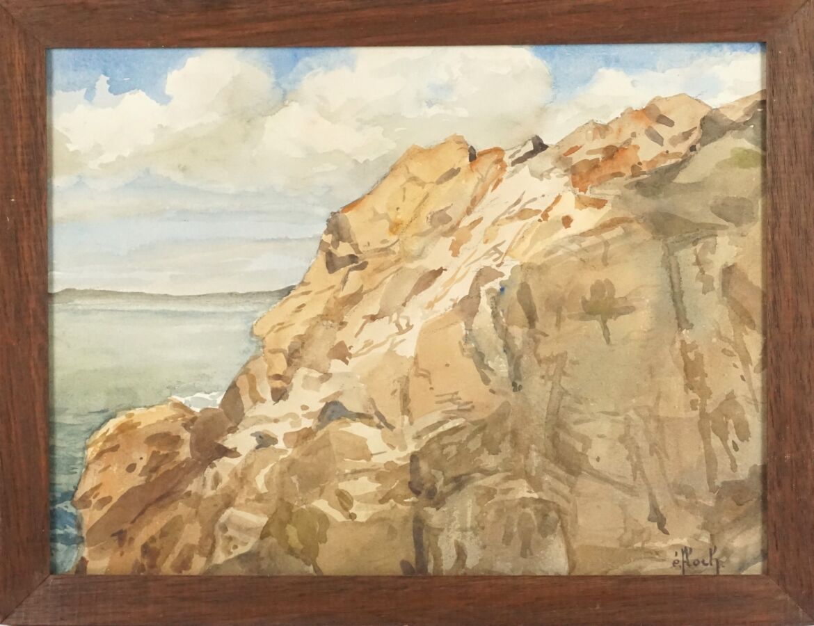 E. FLOCH (XXe), "Côte rocheuse", aquarelle signée en bas à droite, 22.5 x 30.5 cm (à vue).