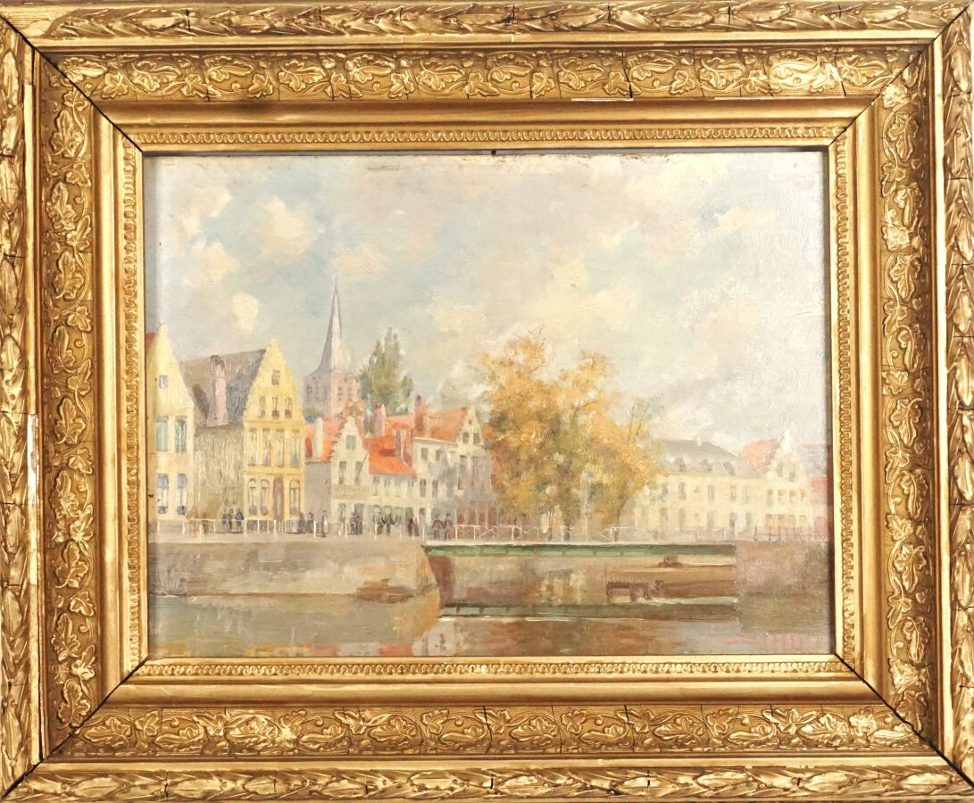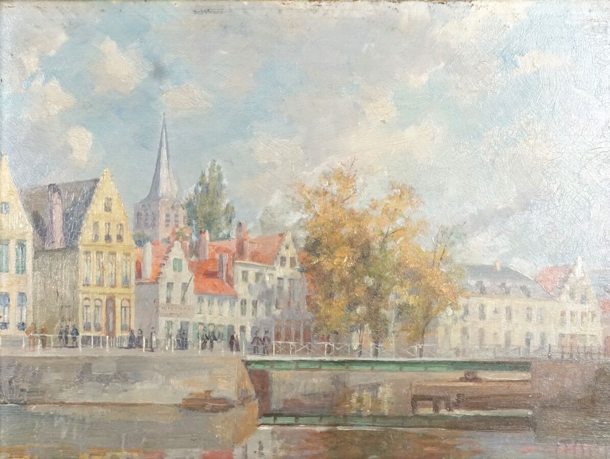 Ecole de la fin du 19ème siècle, "Les quais animés", huile sur panneau, non signée, 24 x 32 cm.