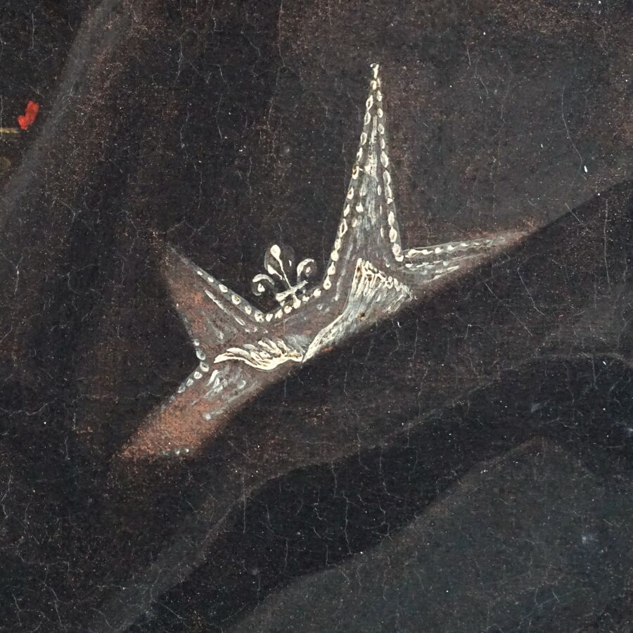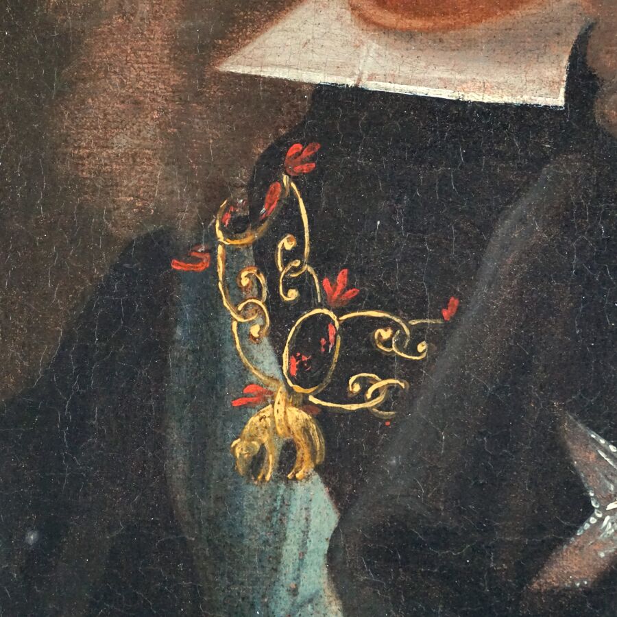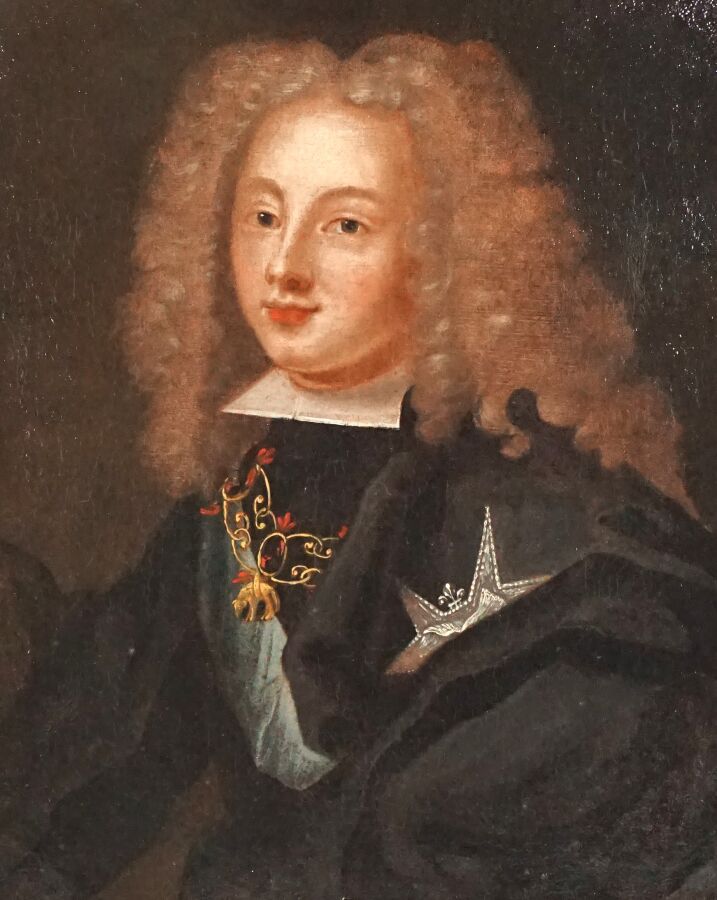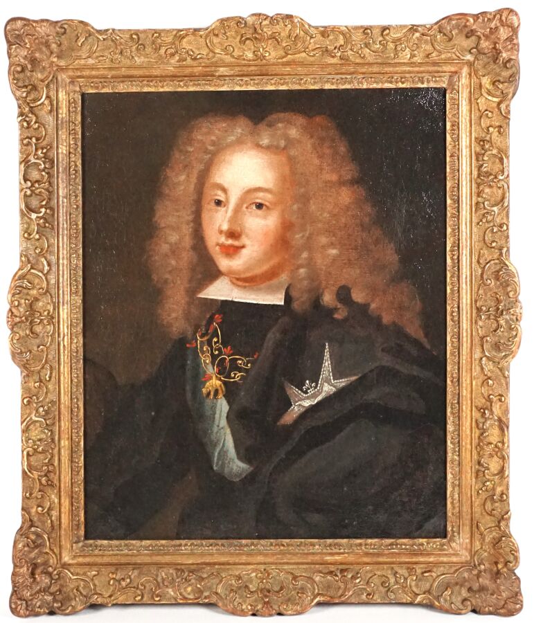 Ecole du 18ème siècle, " Portrait du roi d'Espagne Philippe V jeune portant le collier de l'ordre de la Toison d'Or", huile sur toile, 40 x 32 cm (rentoilée, restauration).
