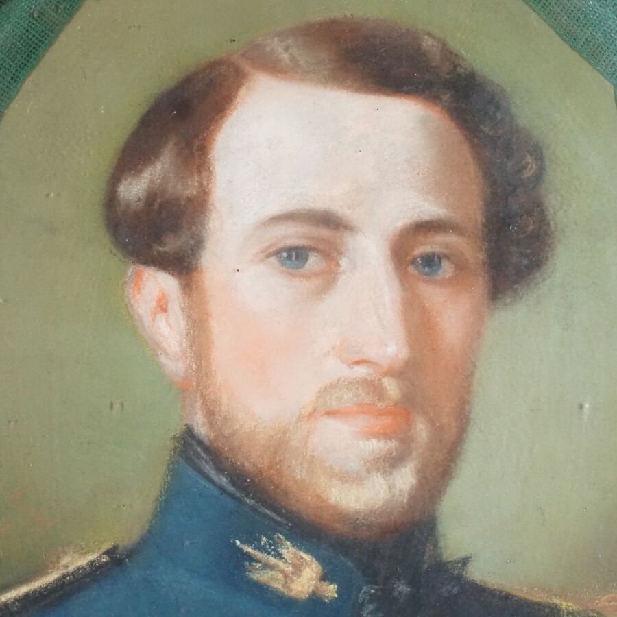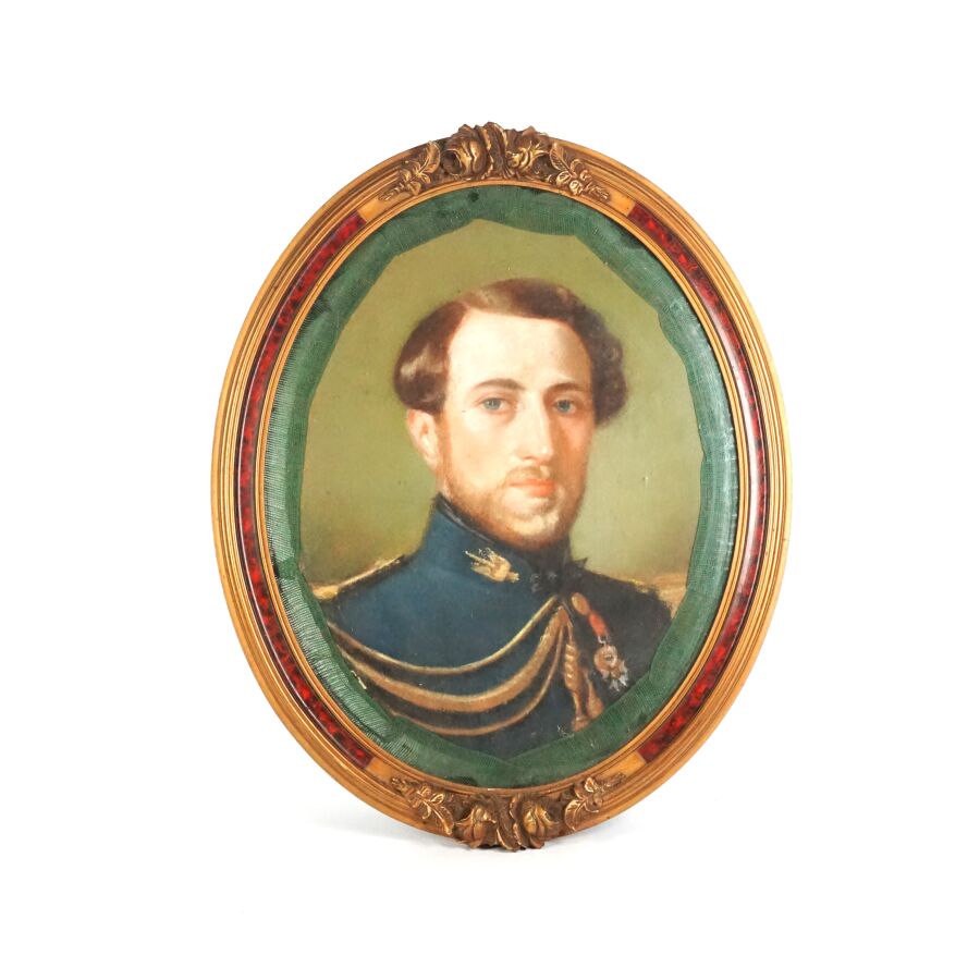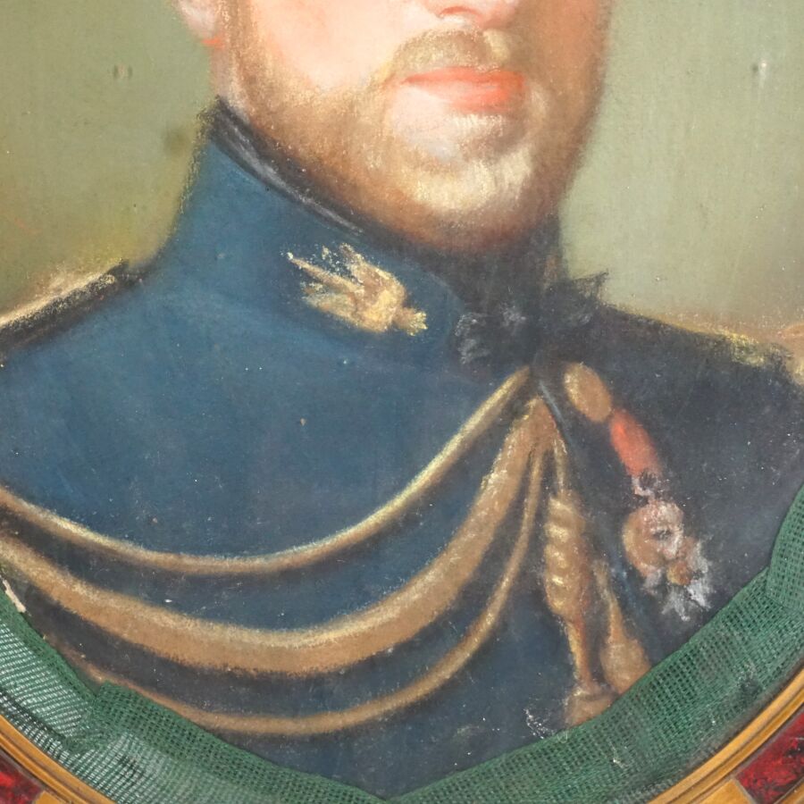 Ecole du 19ème siècle, "Portrait en costume officiel", pastel non signée, format ovale, 43 x 32 cm.