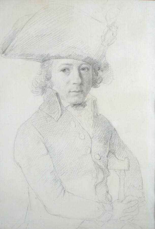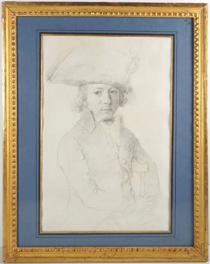 Ecole française de la fin du 18ème - début du 19ème siècle, "Jeune révolutionnaire", dessin à la pierre noire sur papier, 39 x 26 cm (à vue).