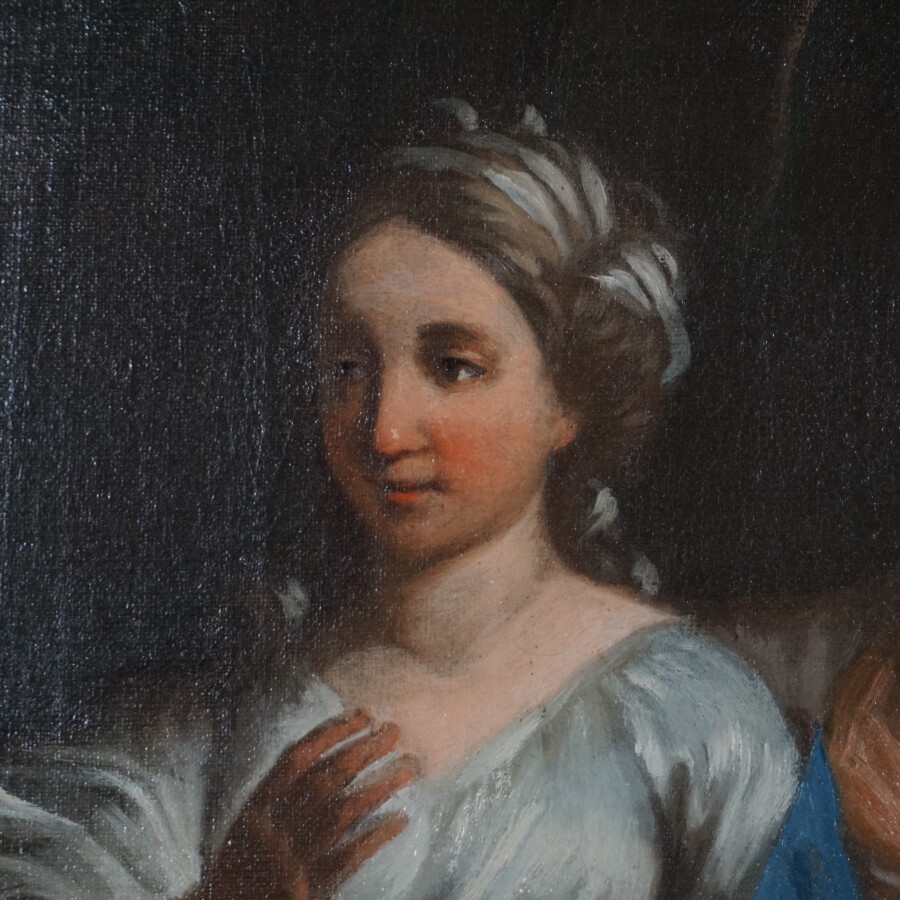 Ecole française de la fin du 18ème siècle, "Léa, Rachel et Laban, Genèse 29, ç-30", huile sur toile non signée, 149 x 87 cm (restauration d'usage et rentoilage).