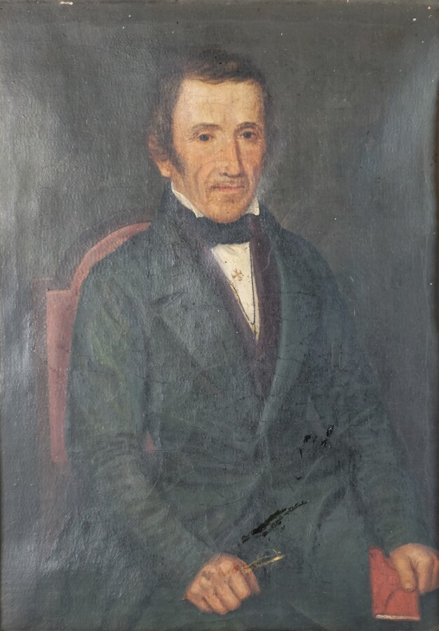 Ecole française de la seconde moitié du 19ème siècle, "Portrait de femme assise" et "Portrait d'homme de qualité", huiles sur toile formant un pendant, non signées, 33 x 24 cm (usures et petits manques).