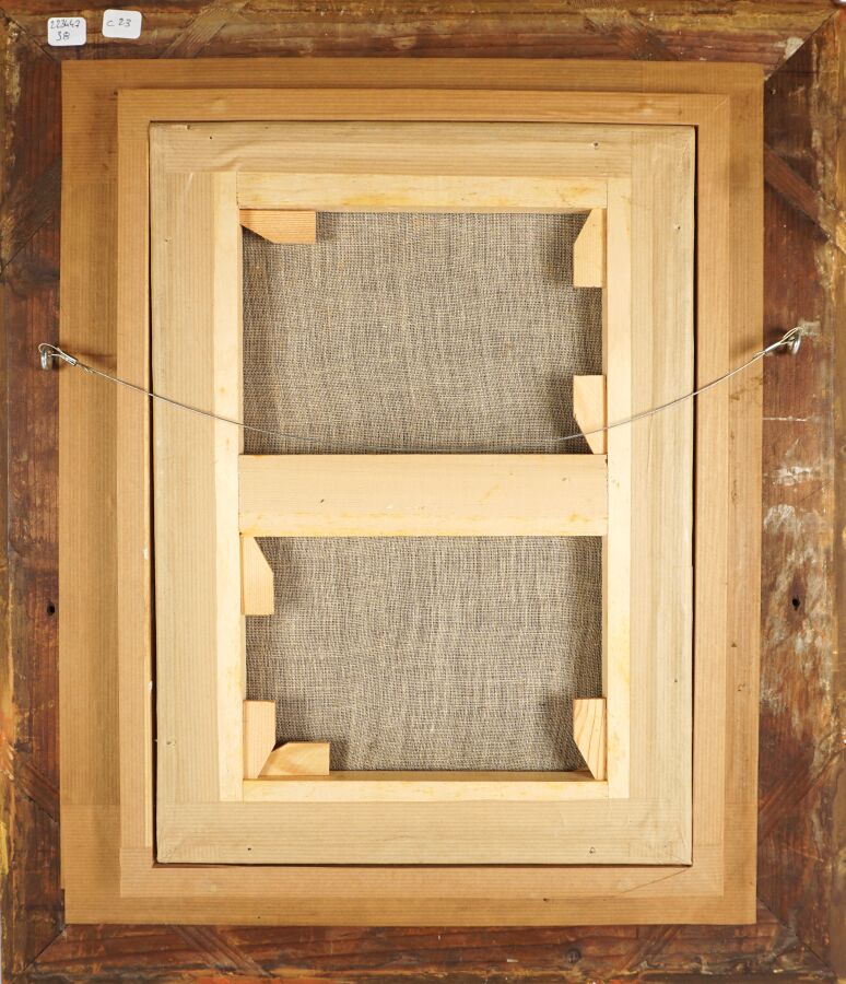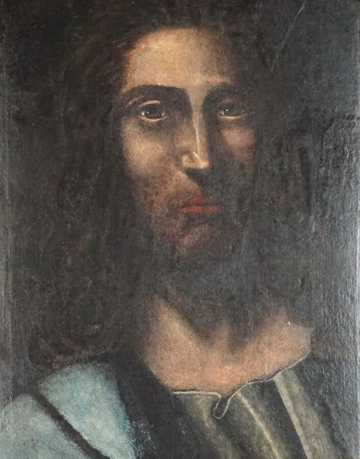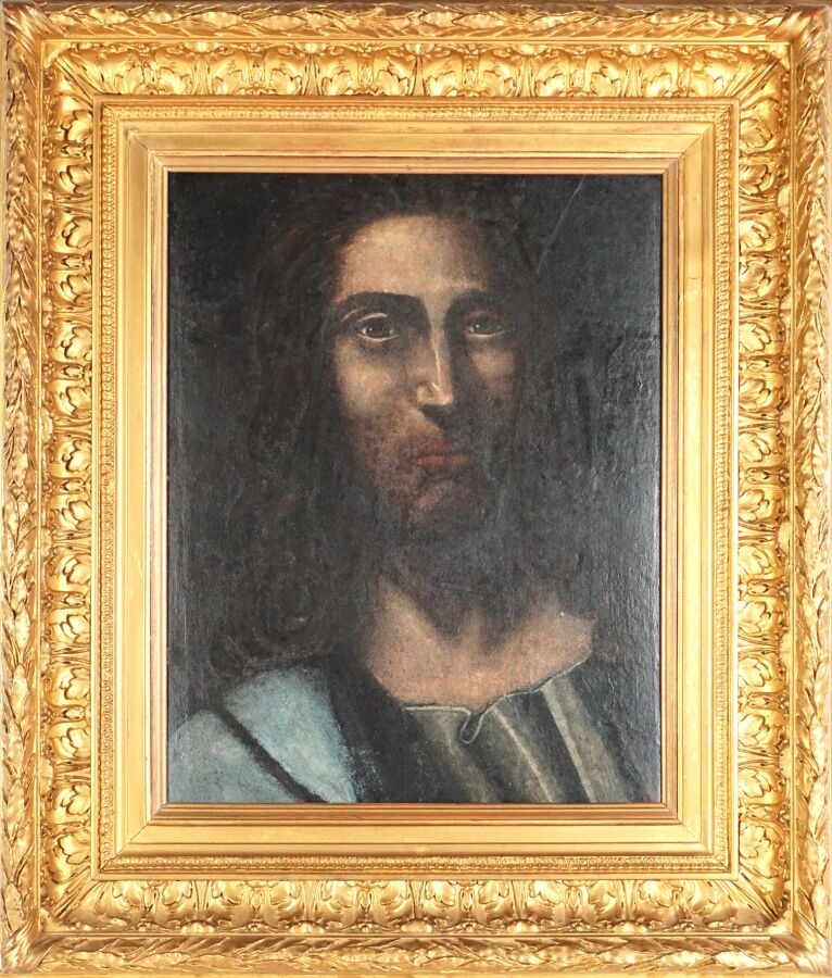 École française du 17ème siècle, "Portrait d'homme", huile sur toile marouflée présentée dans un cadre du 19ème siècle, 41 x 30 cm (nombreuses restaurations).
