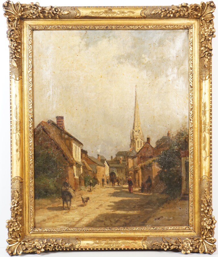 Ecole française du 19ème siècle, "Paysage animé de l'Ouest", huile sur toile, 41 x 33 cm (trou en bas à droite, quelques taches).