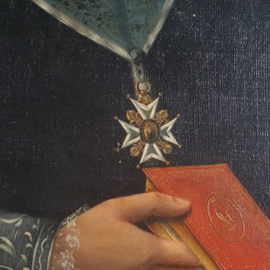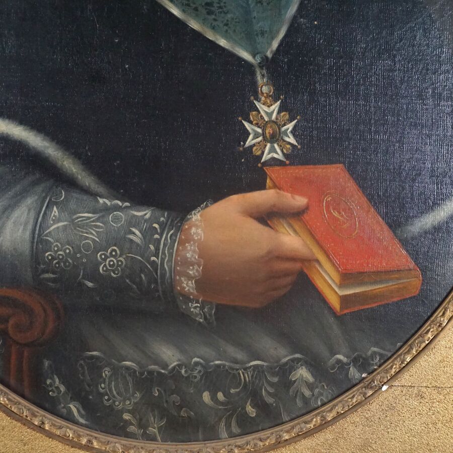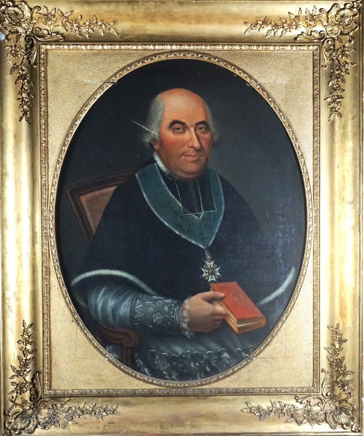 Ecole française du 19ème siècle, "Portrait du chanoine Huart", huile sur toile, non signée, 92 x 68 cm (accidents à la toile).