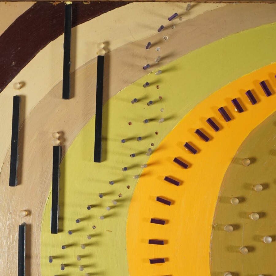 Ecole française du 20ème siècle, "Composition", technique mixte sur panneau, non signée, 122 x 159.5 cm.