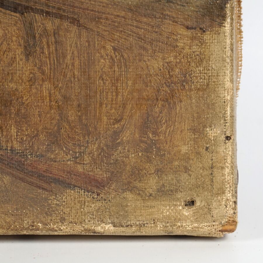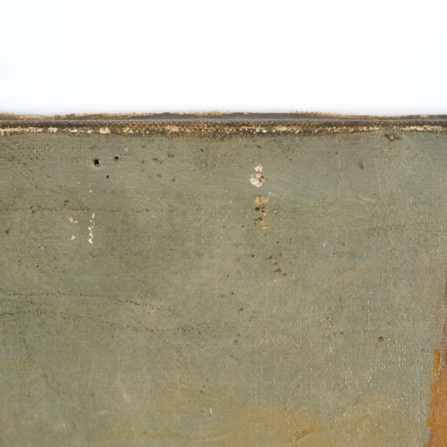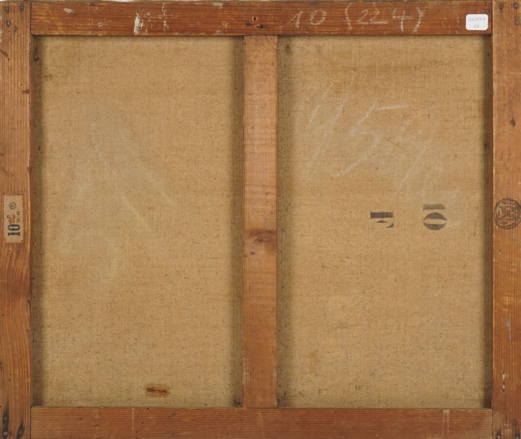 École française du 20ème siècle, "Le canal", huile sur toile non signée, 46 x 55 cm (trous de punaise aux angles, petites usures).