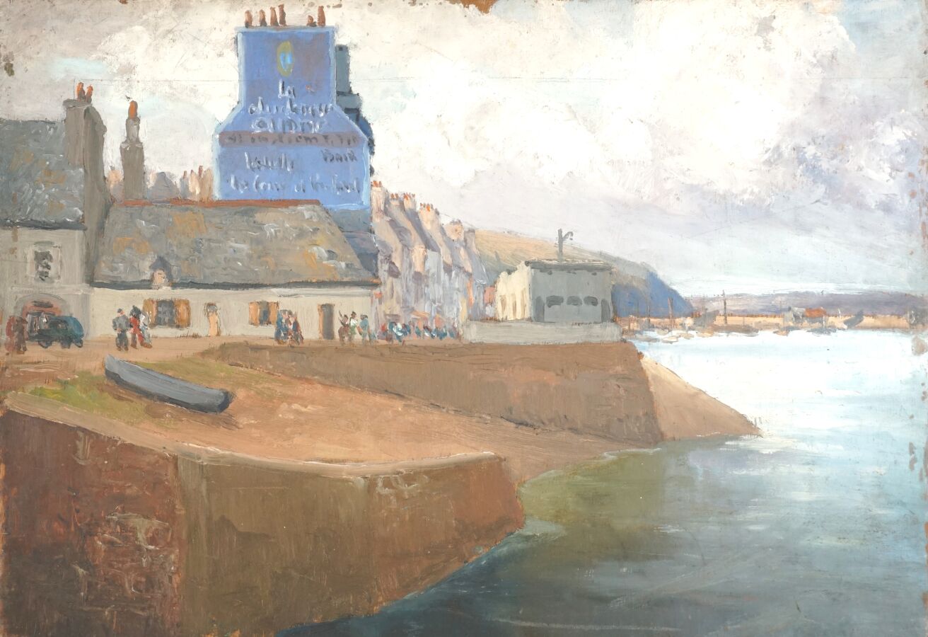 Ecole française du 20ème siècle, "Les quais", deux huiles sur panneau, non signées, 38.4 x 55 cm.