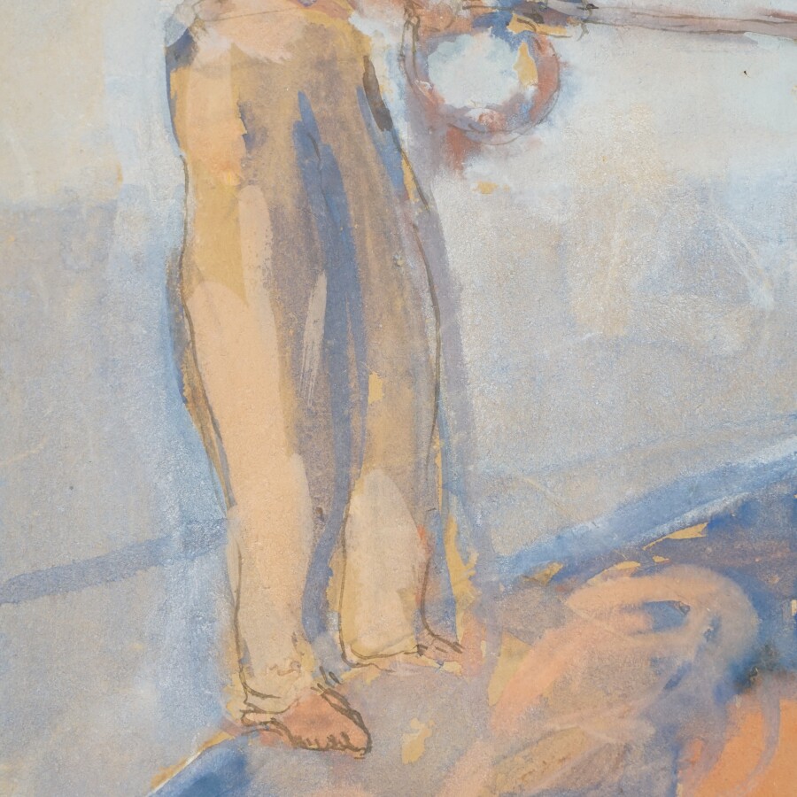 Ecole française du 20ème siècle, "Matelots à la corde", dessin et aquarelle sur papier, non signé, 25 x 33 cm.