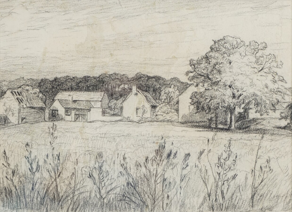 Ecole française du 20ème siècle, "Monument" et "Hameau", deux dessins au crayon, l'un signé P. Pierre, 22.5 x 30 cm (à vue) et 20 x 27.5 cm (à vue).