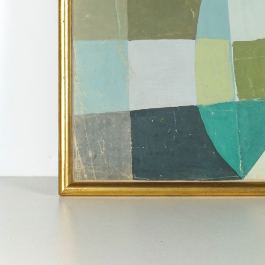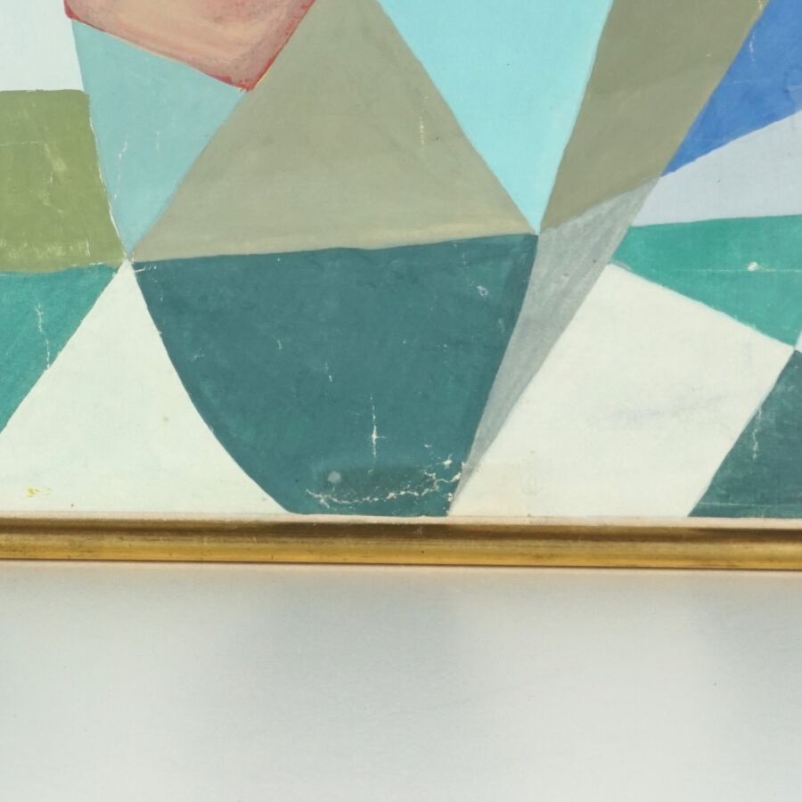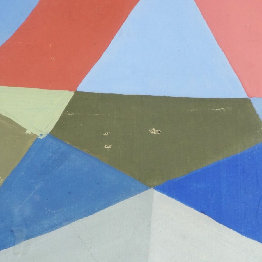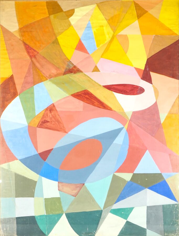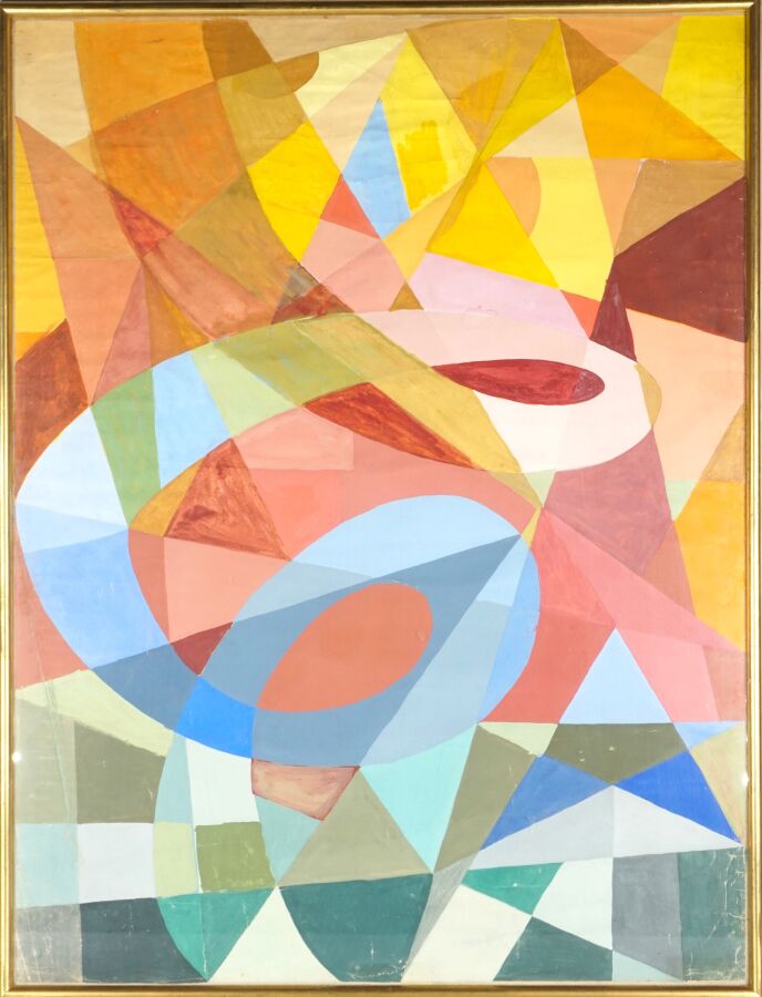 École française du milieu du 20ème siècle, "Composition", gouache sur papier, non signée, circa 1960, 63 x 48 cm (usures, trous, traces d'humidité).