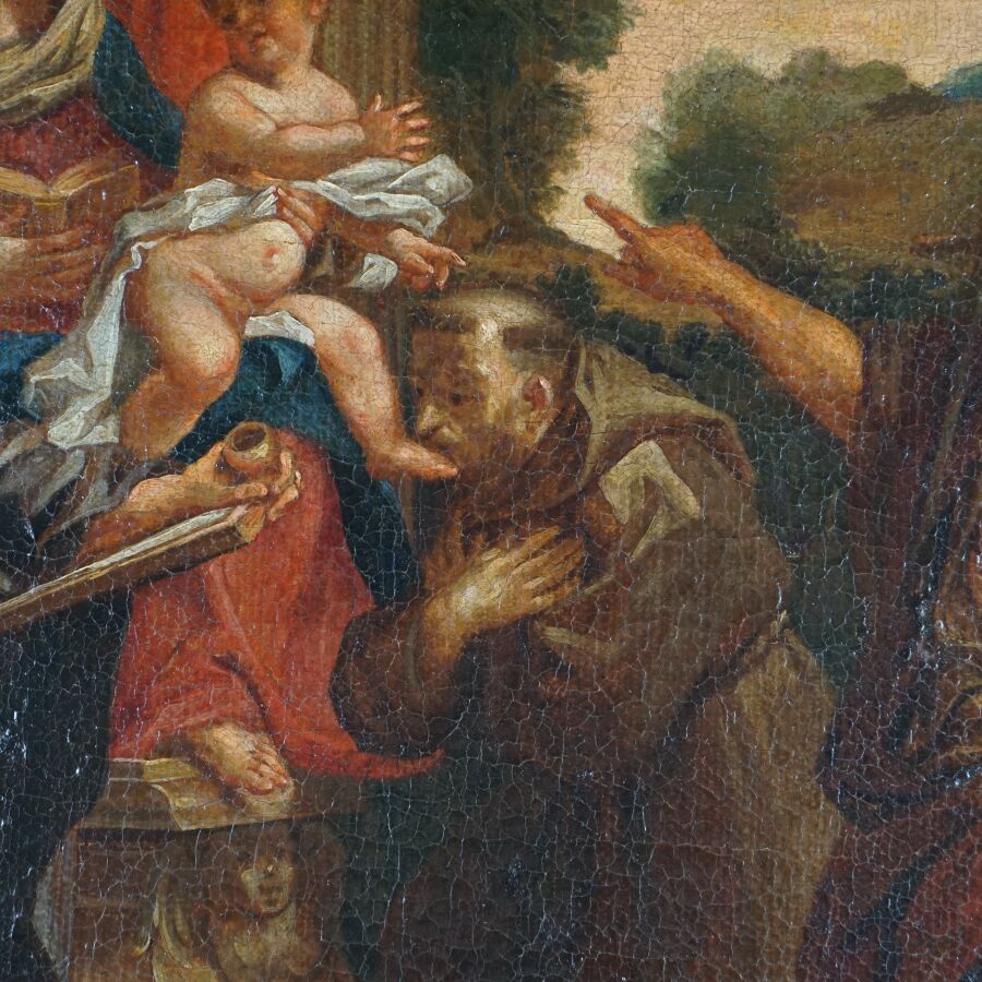 Ecole italienne du 17ème siècle, "Scène biblique", huile sur toile, non signée, 44 x 30 cm (une restauration).