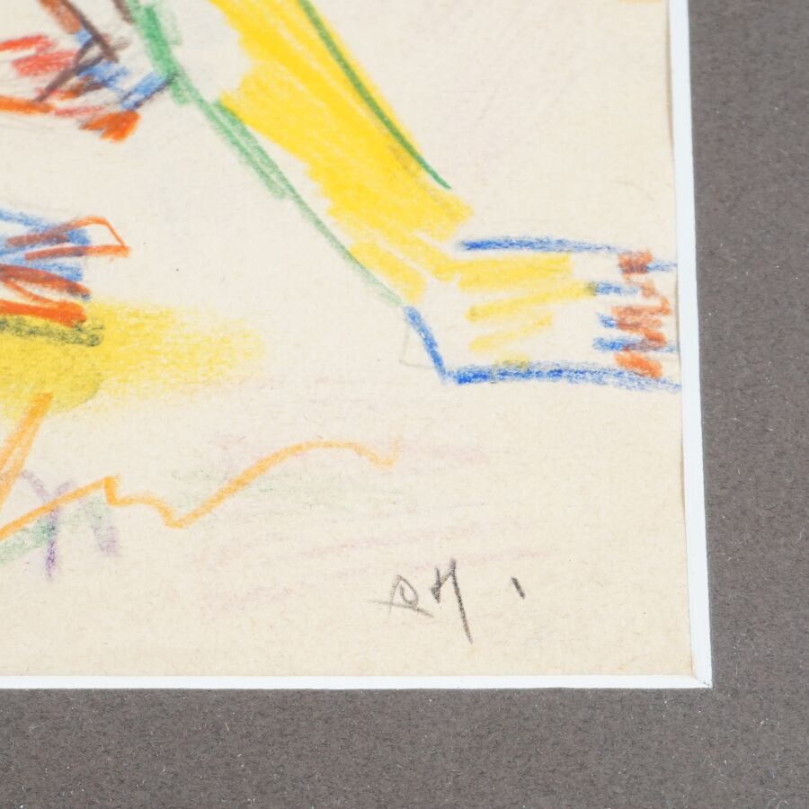 Ecole moderne,"Personnage assis", dessin au crayon de couleurs, monogrammé EM en bas à droite, 22 x 16.3 cm (à vue).