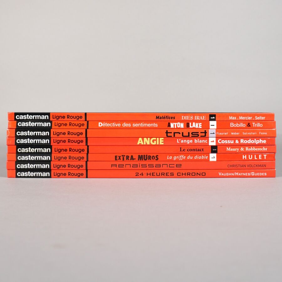 Éd. CASTERMAN, collection Ligne rouge : Ensemble de 8 albums comprenant DIES IRAE (tome 1), ANTON BLAKE (tome 1), TRUST (tome 1), ANGIE (tome 1), LE CONTACT (tome 1), EXTRA MUROS (tome 1), "Renaissance" et "24 heures chrono".