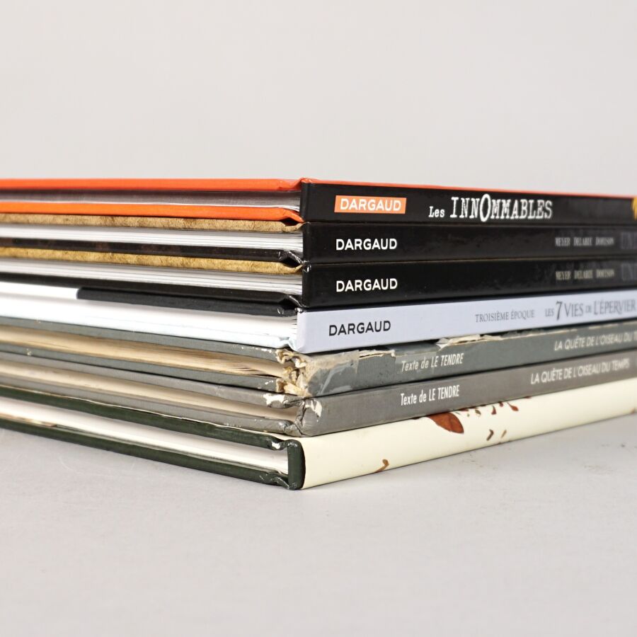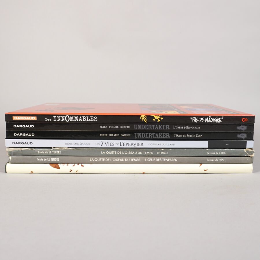 Éd. DARGAUD : Ensemble de 7 albums comprenant UNDERTAKER (tomes 3 et 4 en première édition), LES 7 VIES DE L'ÉPERVIER (tome 1 du troisième cycle, album timbré, numéroté, limité à 250 exemplaires, signé par JUILLARD), LES INNOMABLES (tome 8 en première édition) et LA QUETE DE L'OISEAU DU TEMPS (tomes 3, 4 et le tome 3 de "L'avant quête de l'oiseau du temps" présenté avec sa jaquette).