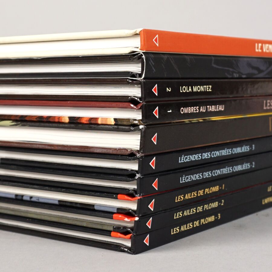 Éd. DELCOURT : Ensemble de 10 albums comprenant LÉGENDES DES CONTRÉES OUBLIÉES (tomes 2 et 3), LES AILES DE PLOMB (tomes 1, 2 et 3), "Le vendangeur de Paname", SONORA (tome 2), LES PIERRES ROUGES (tome 1), "Vies tranchées" et le tirage CANAL BD de SONORA (tome 1, dans sa jaquette et dédicacé par DELLAC).