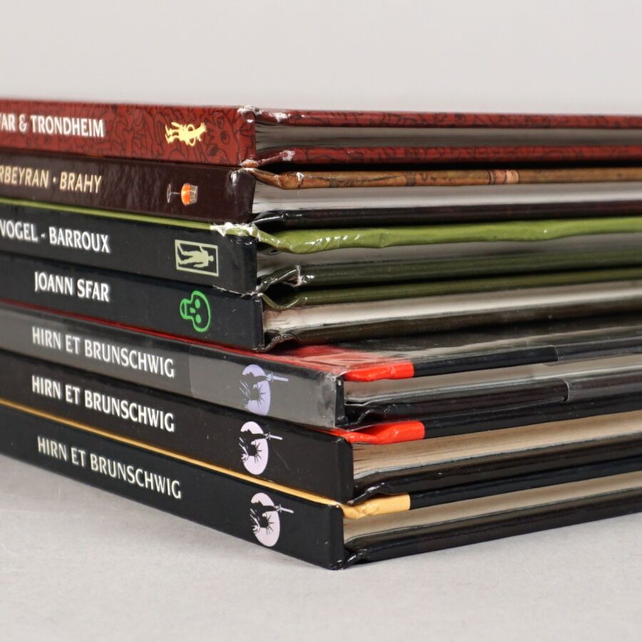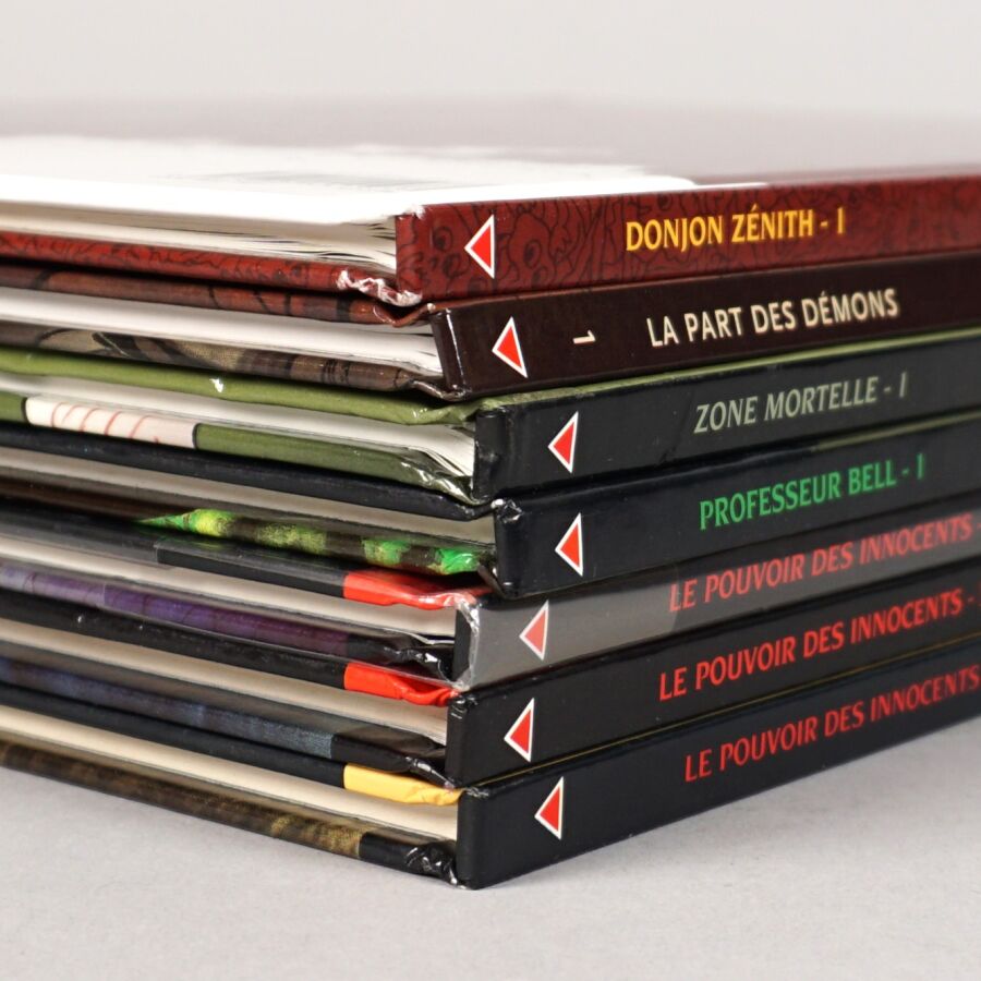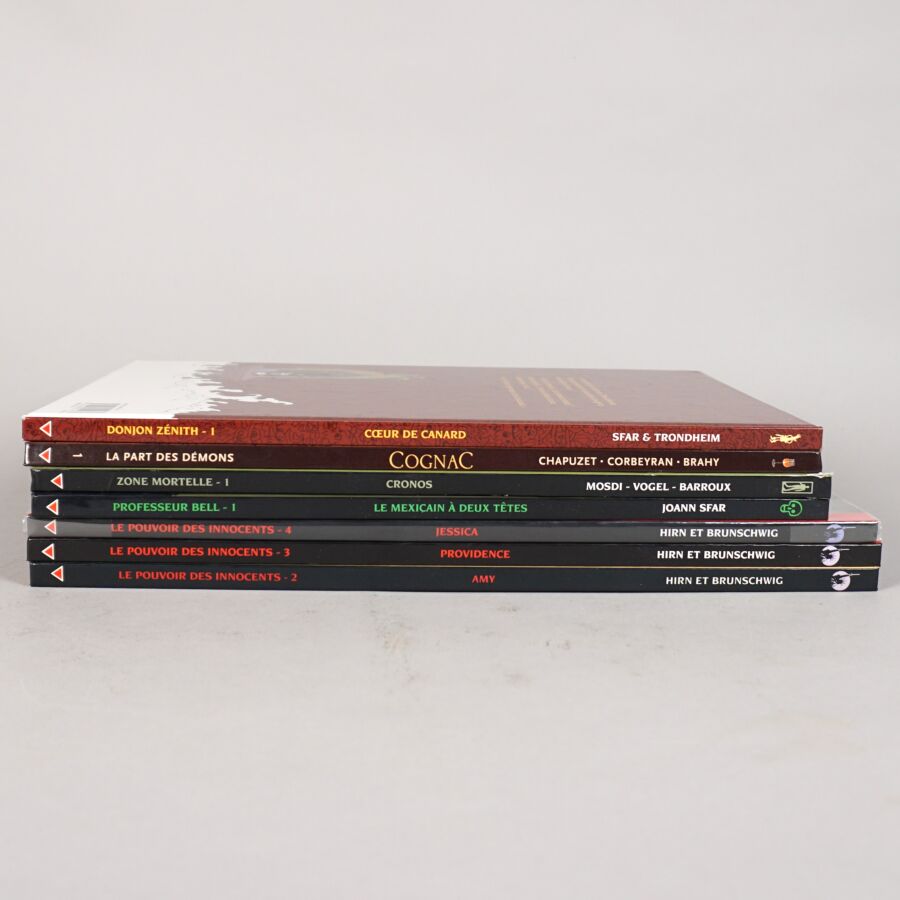 Éd. DELCOURT : Ensemble de 7 albums comprenant COGNAC (tome 1), PROFESSEUR DELL (tome 1), ZONE MORTELLE (tome 1), DONJON (tome 1), LE POUVOIR DES INNOCENTS (tomes 2, 3 et 4 en première édition).