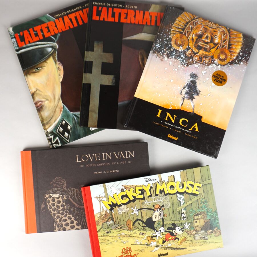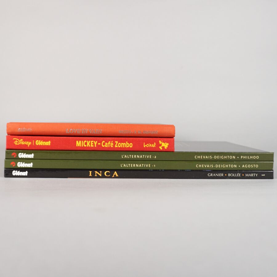 Éd. GLÉNAT : Ensemble de 5 albums comprenant L'ALTERNATIVE (tomes 1 et 2), INCA (tome 1), "Love in vain" (format à l'italienne) et "Mickey café zombo" (format à l'italienne).