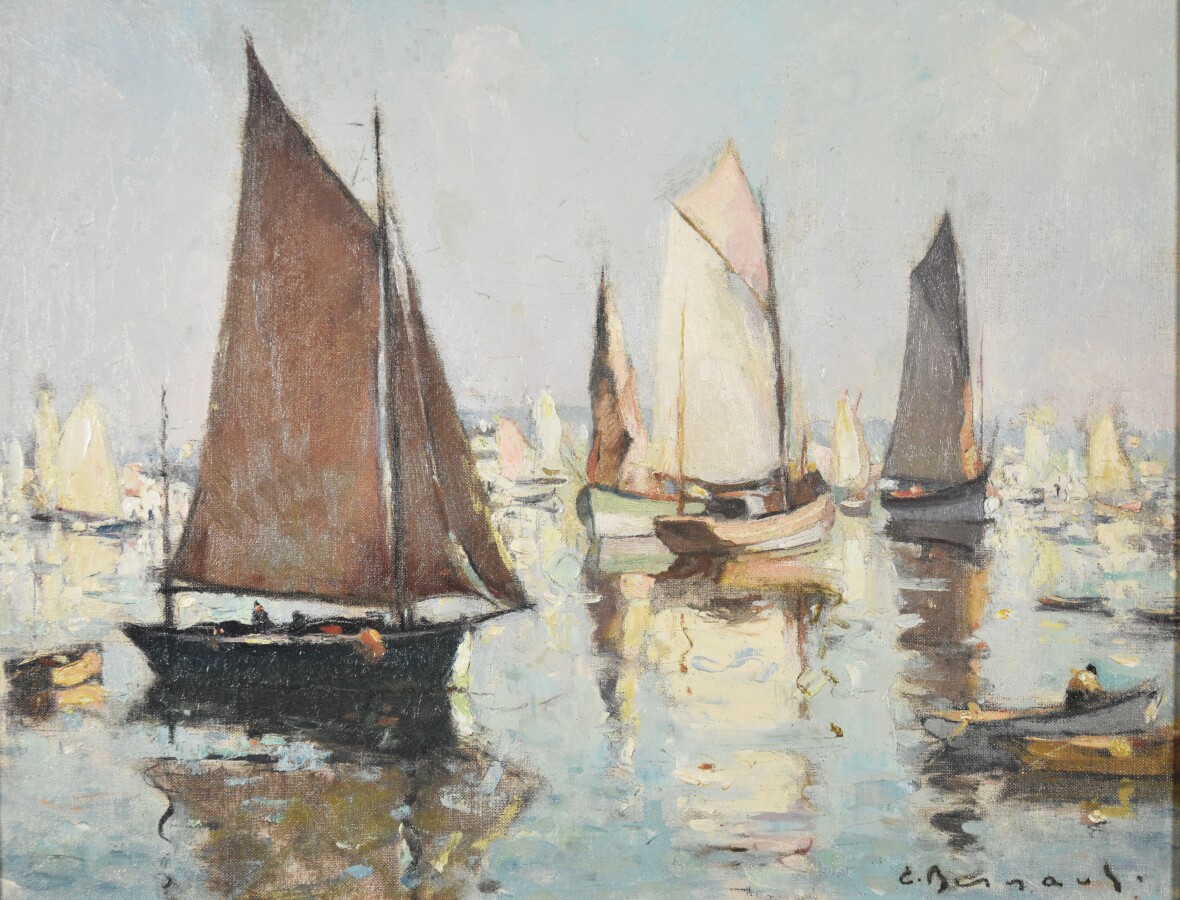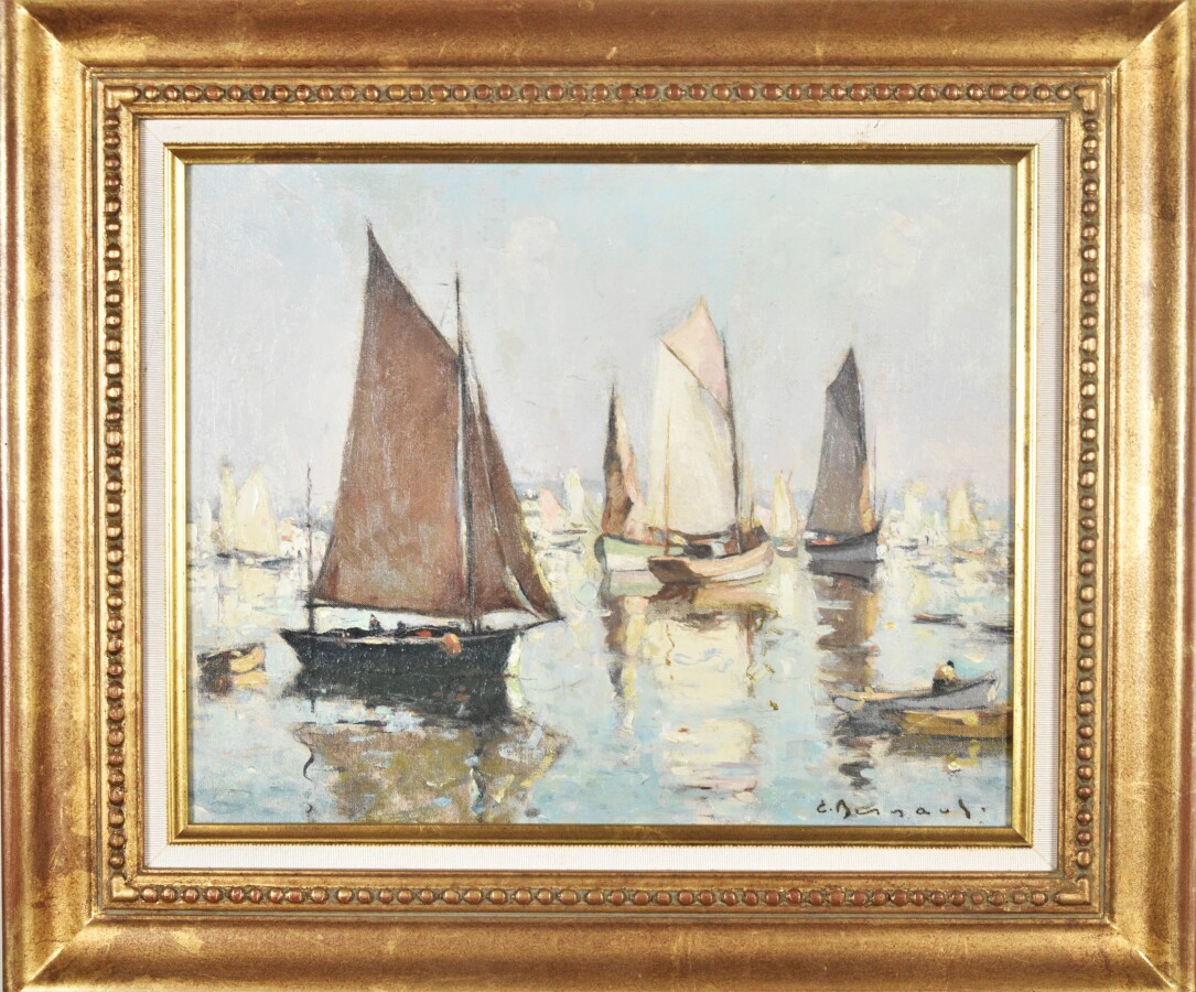 Edouard BEARNAUT (1890-1981), "Vieux gréments navigant", huile sur toile signée en bas à droite, 33 x 41 cm.