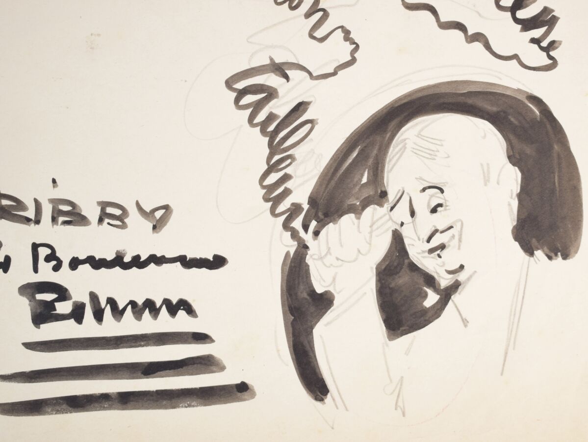 Edouard SAUNIER (1885-1918), "Allo, voici l'adresse !...", encre et lavis d'encre sur papier calque, 31 x 20 cm.
