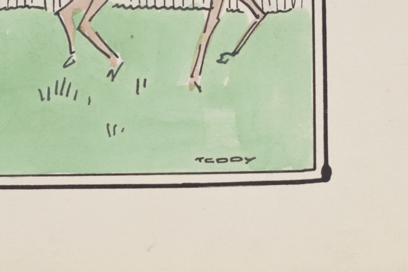 Edouard SAUNIER (1885-1918), "Aux courses", gouache sur papier fort, signée en bas à droite, encadré, 33 x 25 cm.