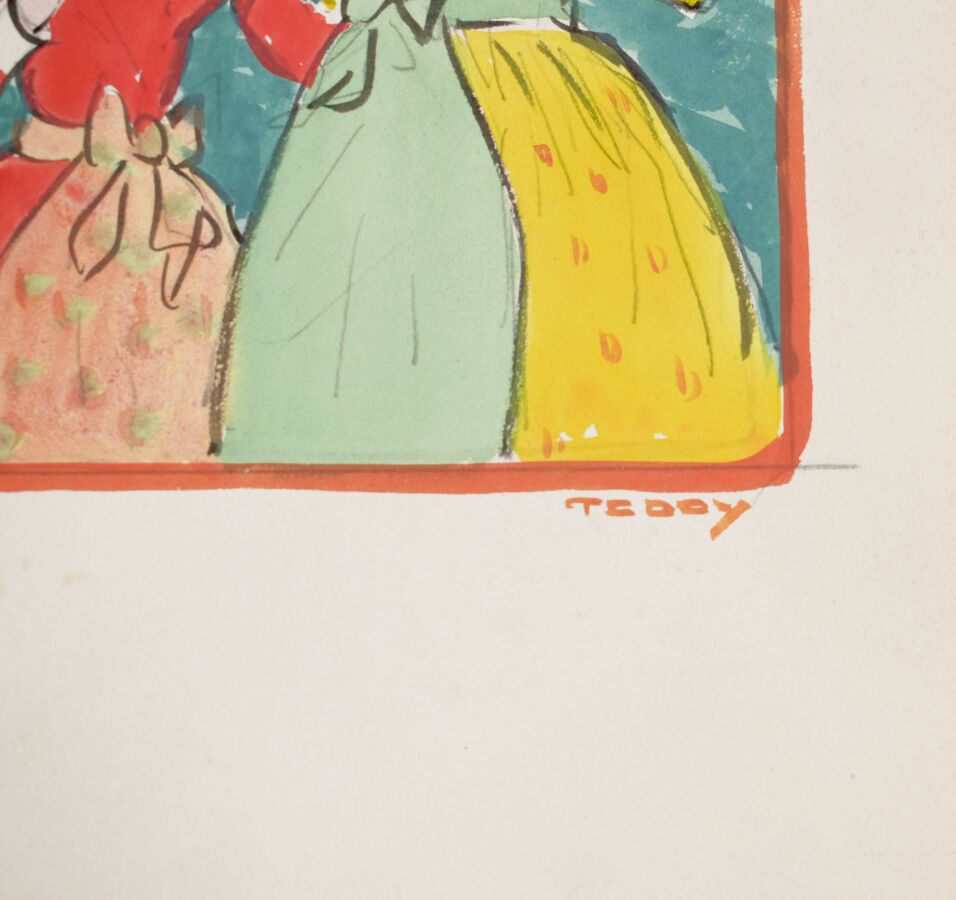Ses créations publicitaires couvrent des domaines variés : restauration, chapellerie, mode, chaussures, optique et pneumatiques. Elles sont généralement signées de son pseudonyme « Teddy » ou accompagnées d'un cachet d'atelier « Edouard Saunier, dessins artistiques » ou un timbre au monogramme ES. Parmi les marques figurent les chapeliers Henry, Léon et Rochet, le magasin de jouets Le Paradis des Enfants, les chaussures UNIC, Caveryrac et Raoul, les filtres Maignen, les pneumatiques Wolber et Lucifer, ainsi que les tailleurs Boka, Dewachter, Lejeune et Libby.