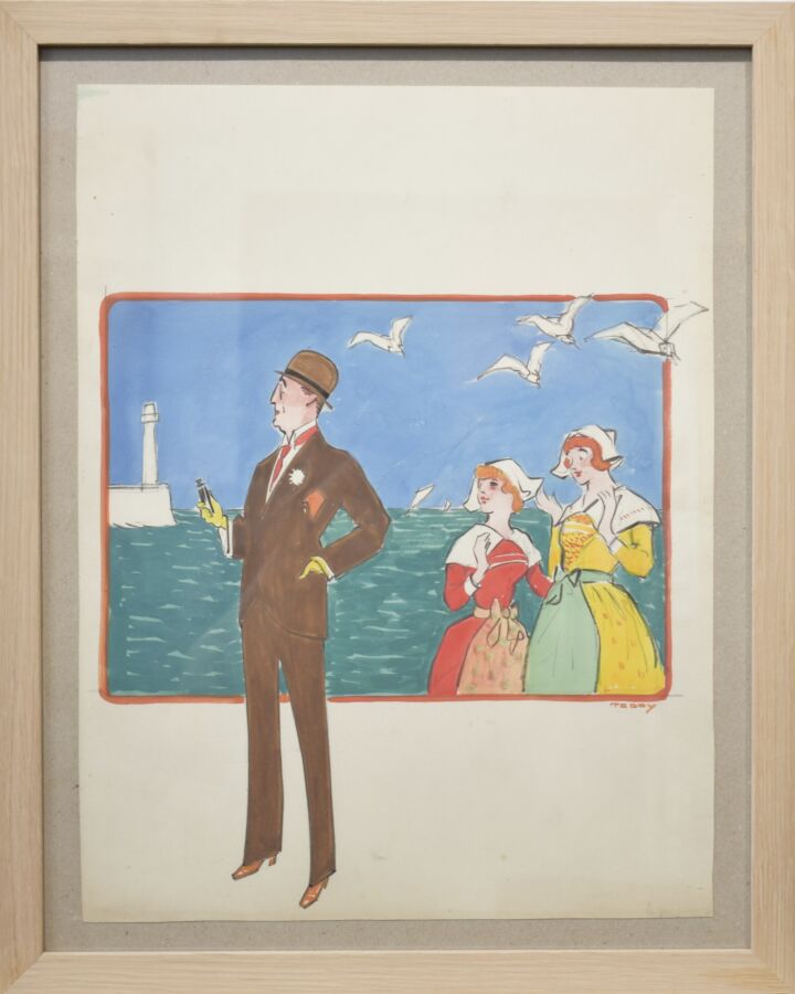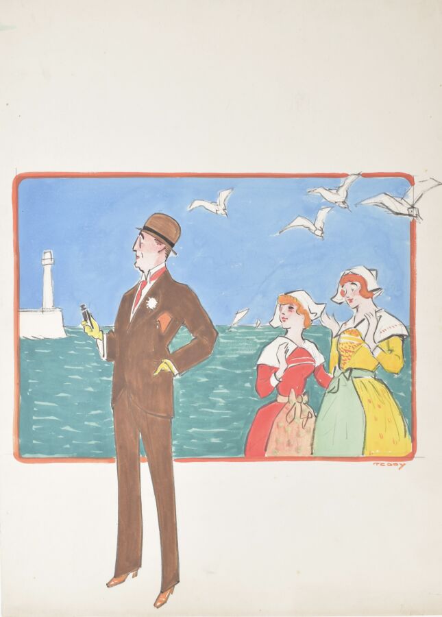 Edouard SAUNIER (1885-1918), "Devant le phare", aquarelle et gouache sur papier, signée en bas à droite, encadrée, 40 x 30 cm.