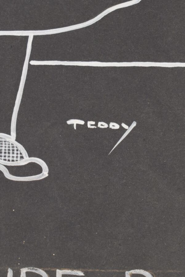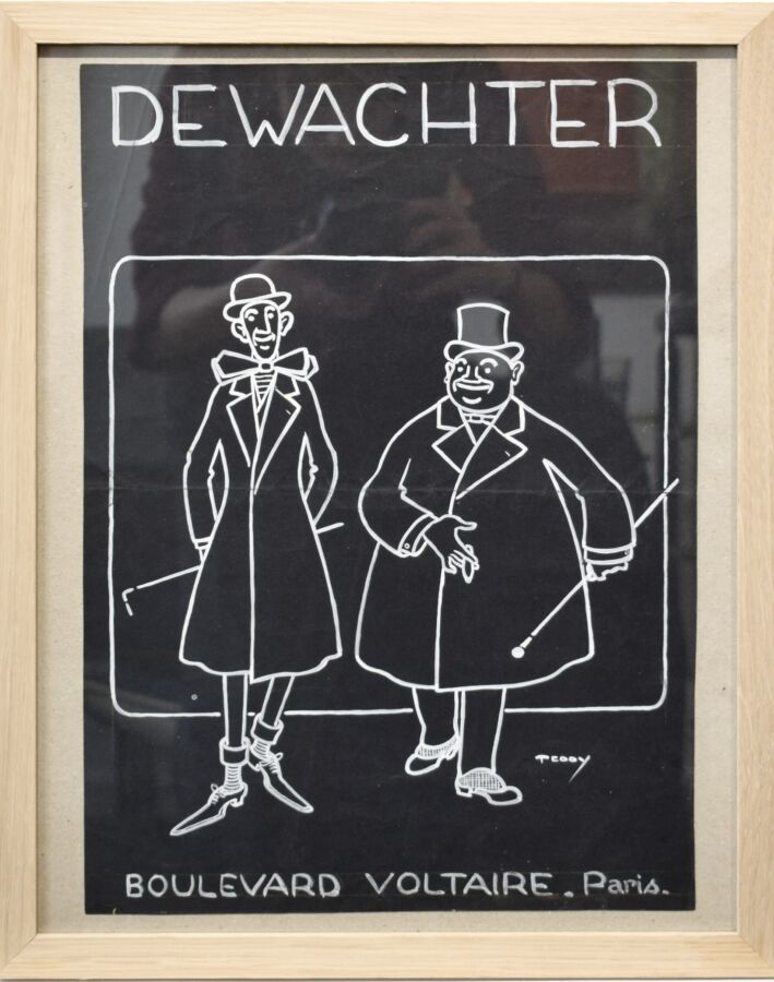 Edouard SAUNIER (1885-1918), "DEWACHTER", gouache blanche sur papier noir, signée en bas à droite, cachet d'atelier au dos, encadrée, 40 x 28.5 cm.