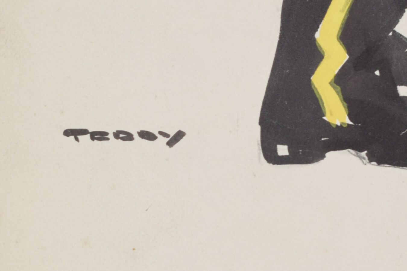 Edouard SAUNIER (1885-1918), "Dressing pour souliers", dessin, aquarelle et gouache sur papier fort, signé en bas à gauche, encadré, 42 x 32 cm.