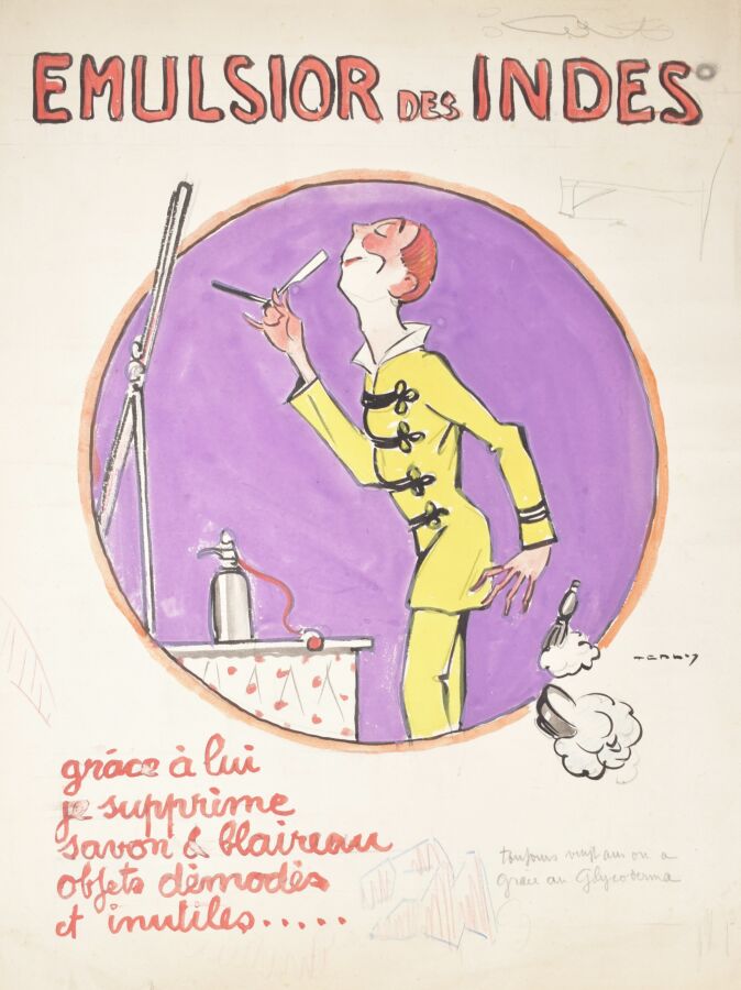 Edouard SAUNIER (1885-1918), "Emulsoir des Indes" dessin, aquarelle, et gouache sur papier, signé en bas à droite, 40 x 30 cm.