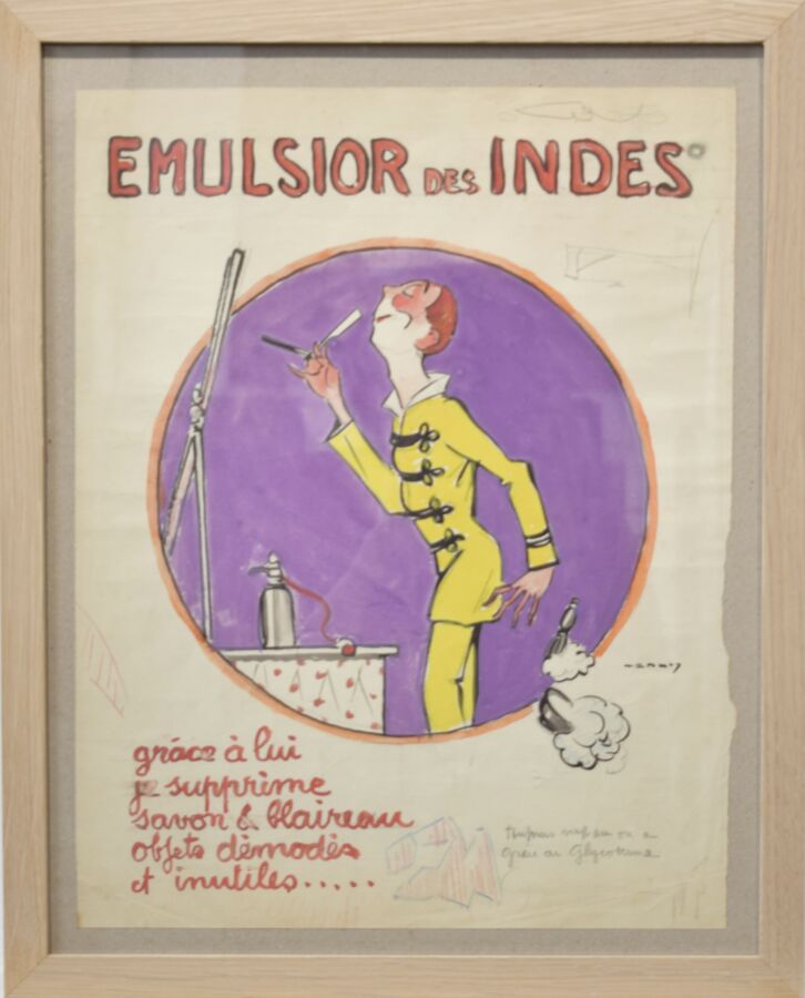 Edouard SAUNIER (1885-1918), "Emulsoir des Indes" dessin, aquarelle, et gouache sur papier, signé en bas à droite, 40 x 30 cm.