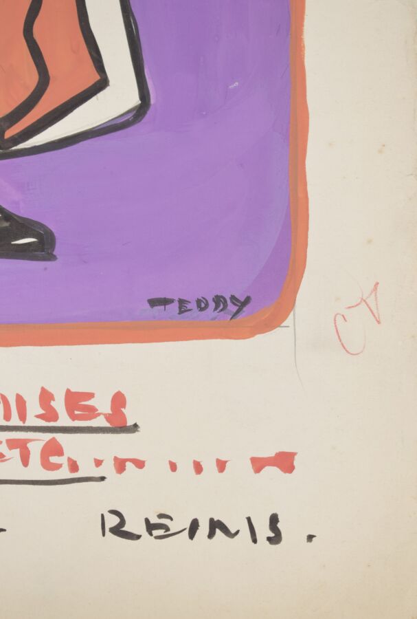 Ses créations publicitaires couvrent des domaines variés : restauration, chapellerie, mode, chaussures, optique et pneumatiques. Elles sont généralement signées de son pseudonyme « Teddy » ou accompagnées d'un cachet d'atelier « Edouard Saunier, dessins artistiques » ou un timbre au monogramme ES. Parmi les marques figurent les chapeliers Henry, Léon et Rochet, le magasin de jouets Le Paradis des Enfants, les chaussures UNIC, Caveryrac et Raoul, les filtres Maignen, les pneumatiques Wolber et Lucifer, ainsi que les tailleurs Boka, Dewachter, Lejeune et Libby.