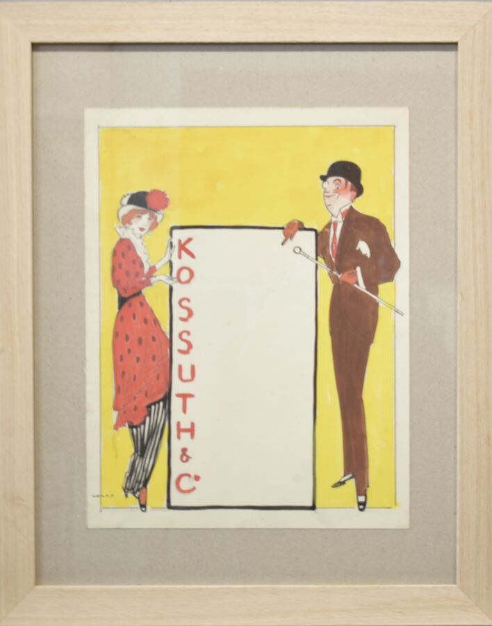 Edouard SAUNIER (1885-1918), "KOSSUTH & CIE", dessin et gouache sur papier fort, signé en bas à gauche, encadré, 33 x 23.5 cm